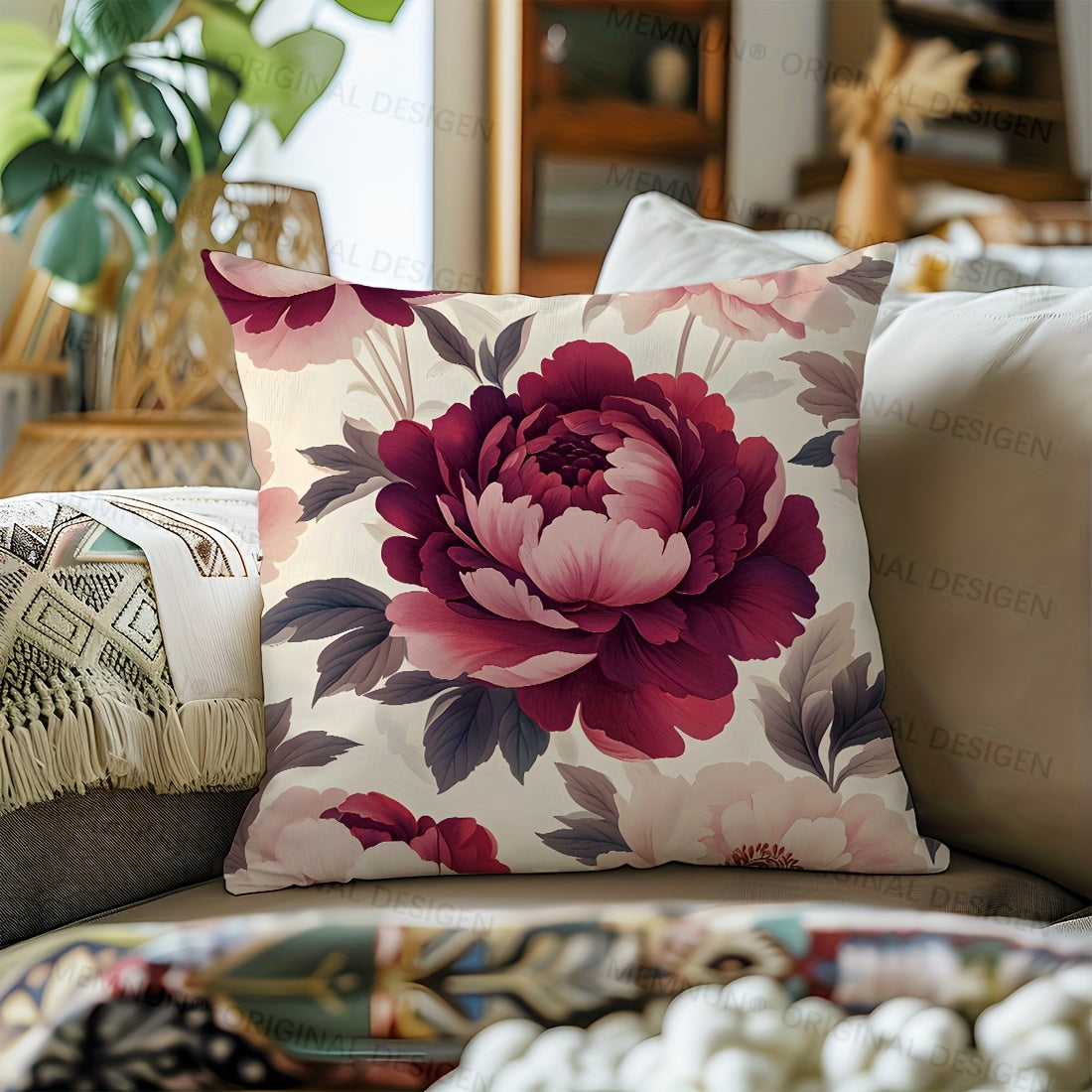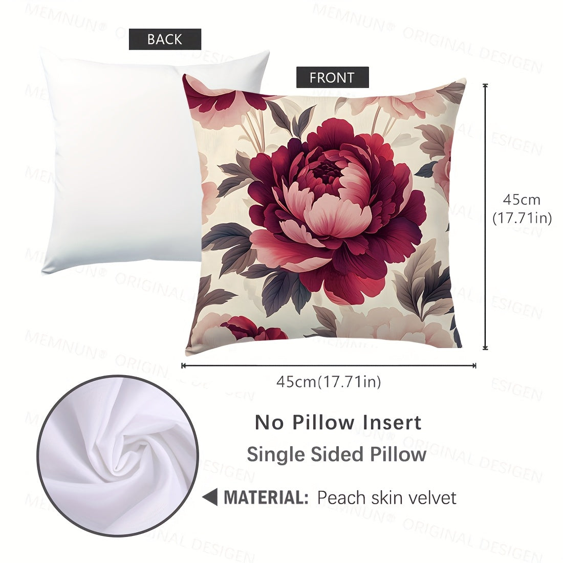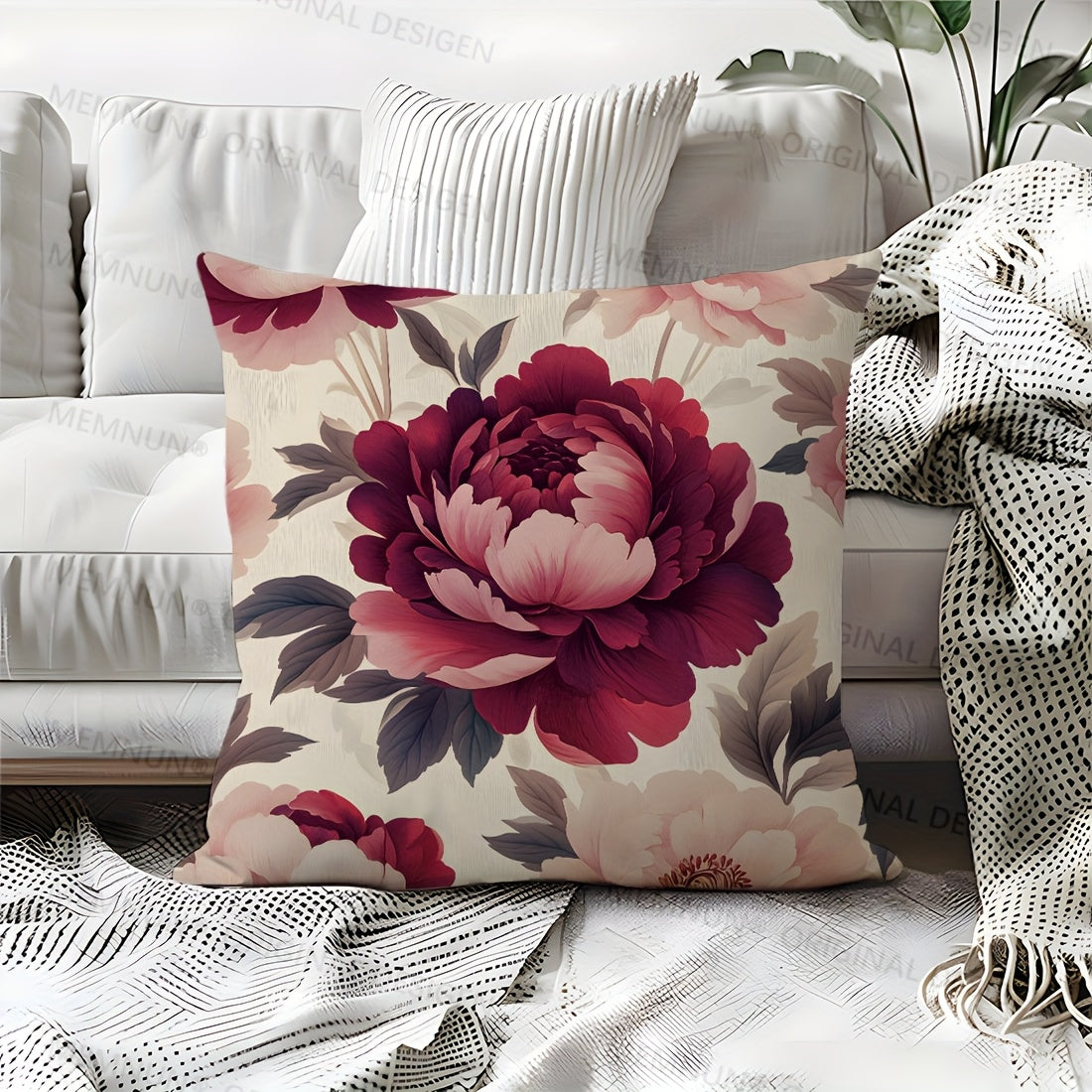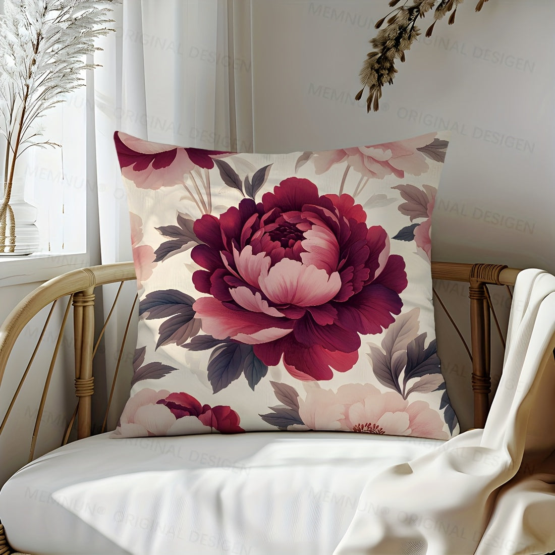1 шт. Подушка с цветочным принтом пиона, 44,98x44,98 см, с застежкой-молнией, гипоаллергенная, машинная стирка, элегантный декор для дивана и спальни, вставка не включена