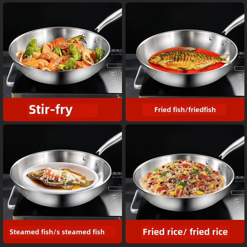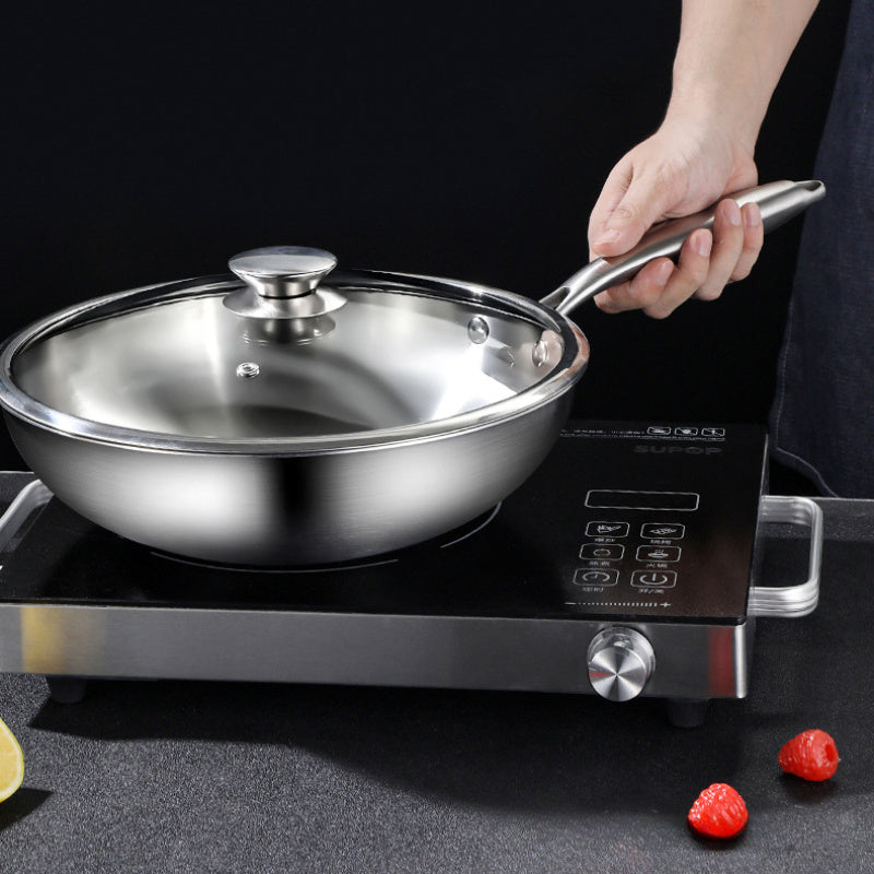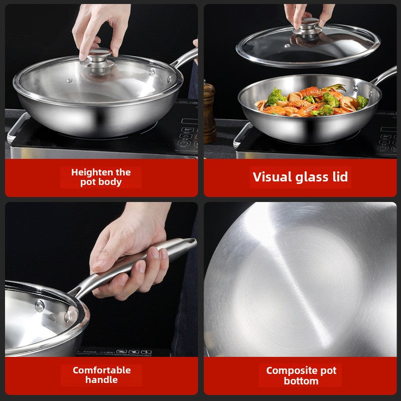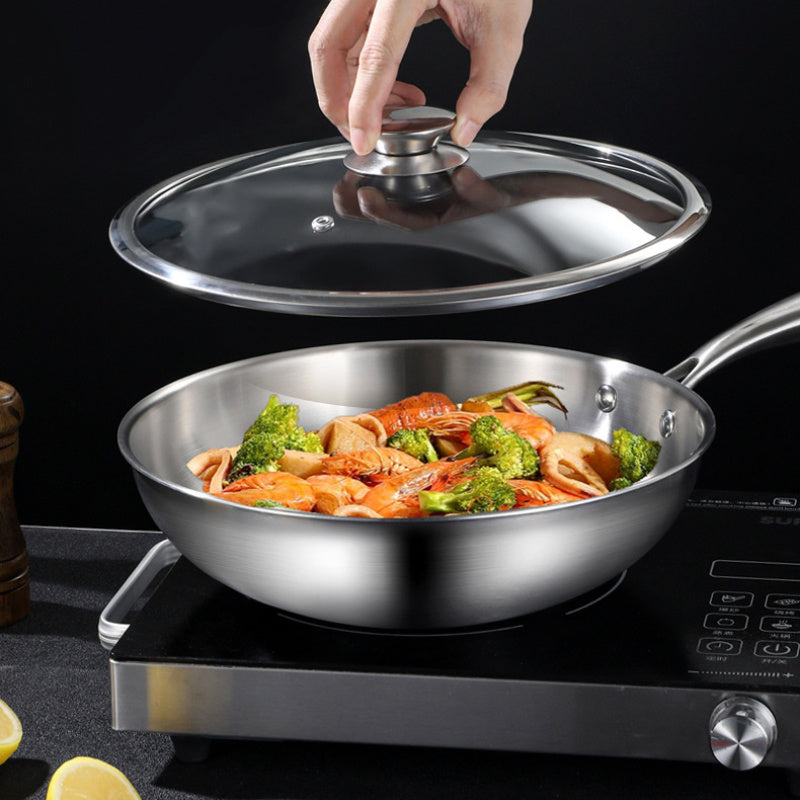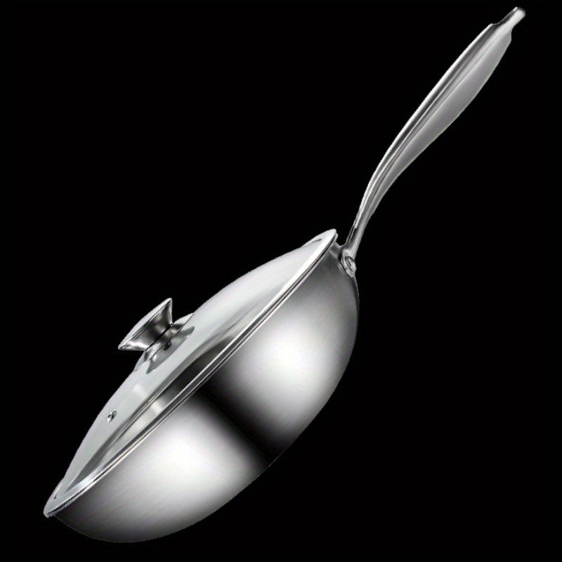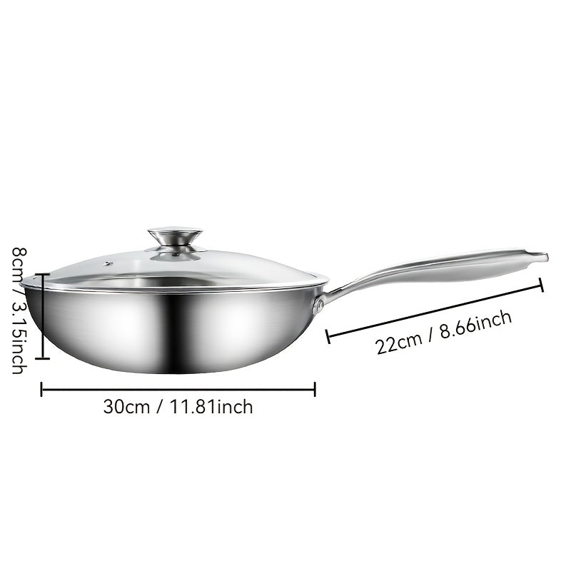 1 шт. 12-дюймовой сковороды из нержавеющей стали с крышкой, совместимой с индукцией, с удлиненной ручкой и не покрытой посудой для универсальной готовки.