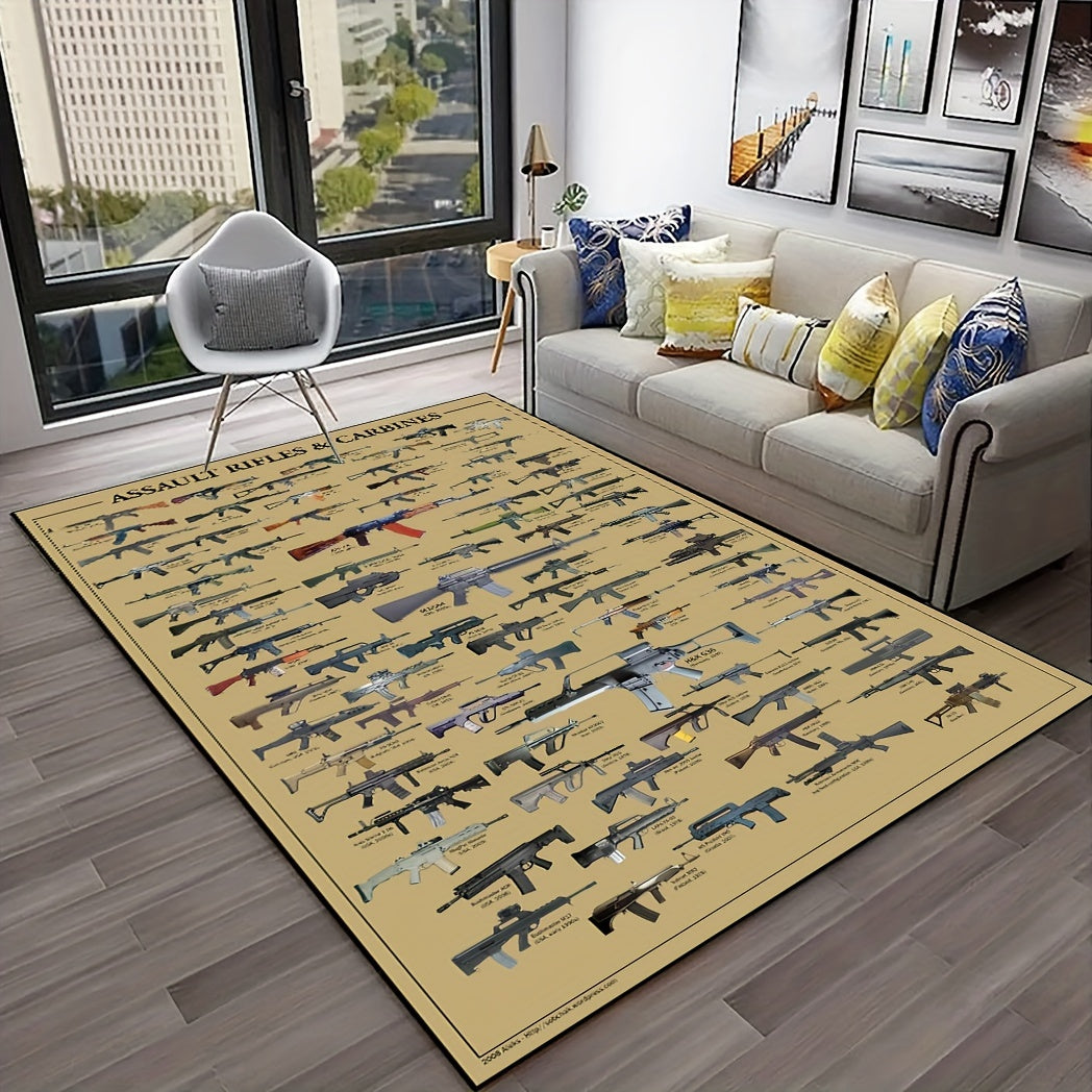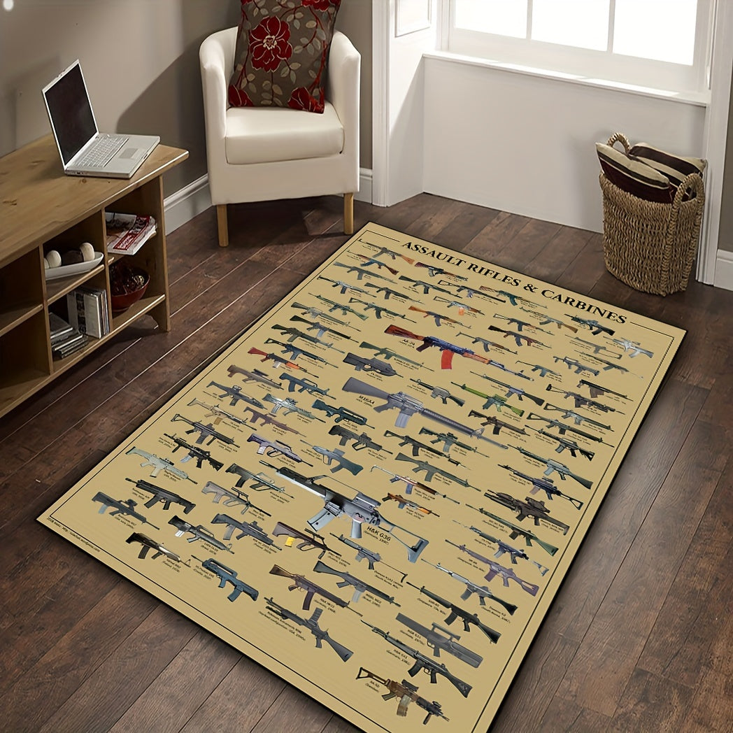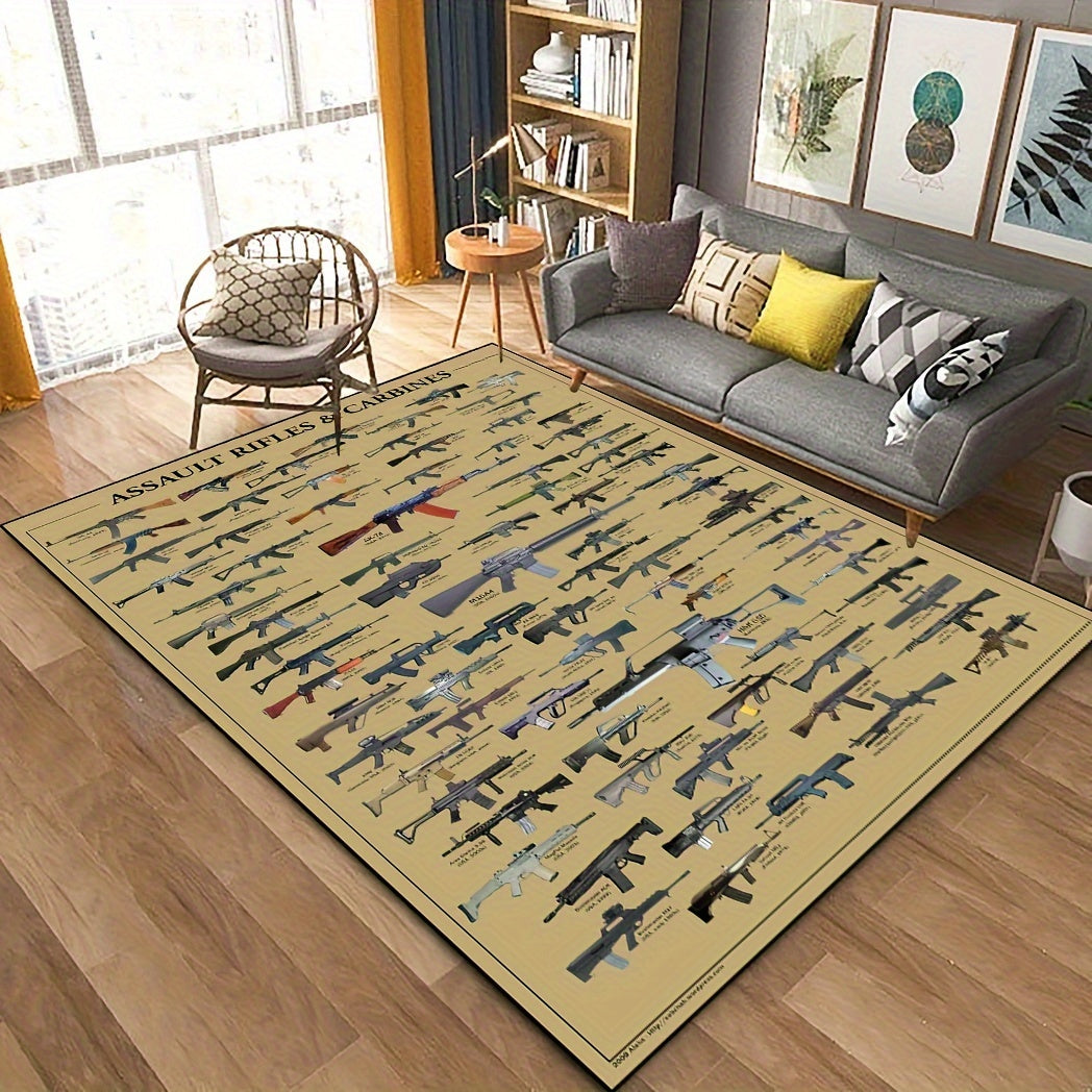 Минималистичный ковер с изображением винтовки, моющийся, нескользящий, для гостиной, спальни, общежития, размеры 19x31 до 62x90 дюймов