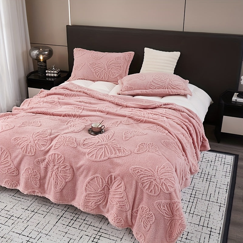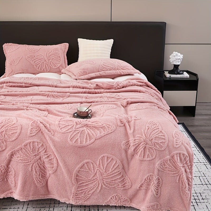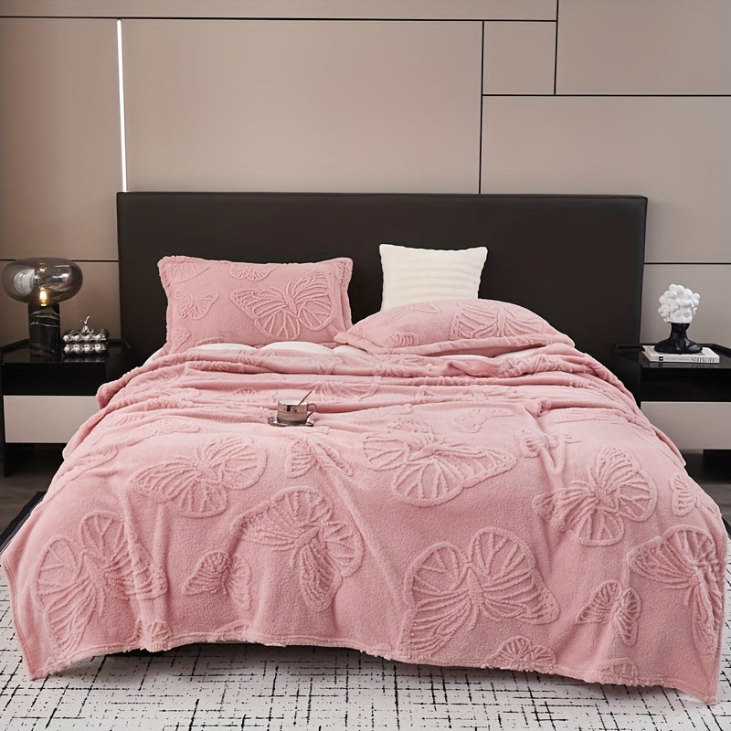 1 штука жаккардового пледа из тафты однотонного цвета - многофункциональный плед в виде бабочки розового цвета для кровати, дивана или кушетки