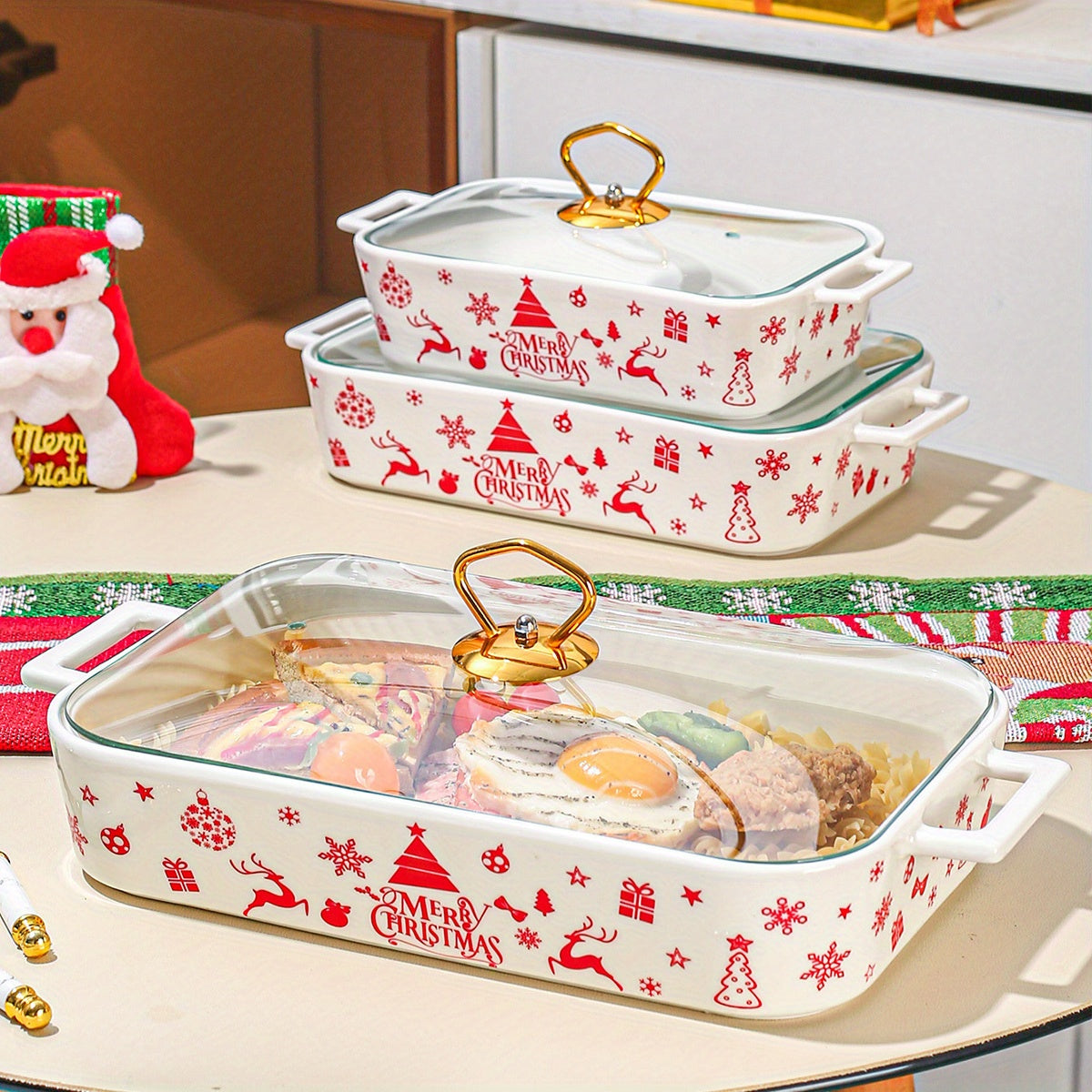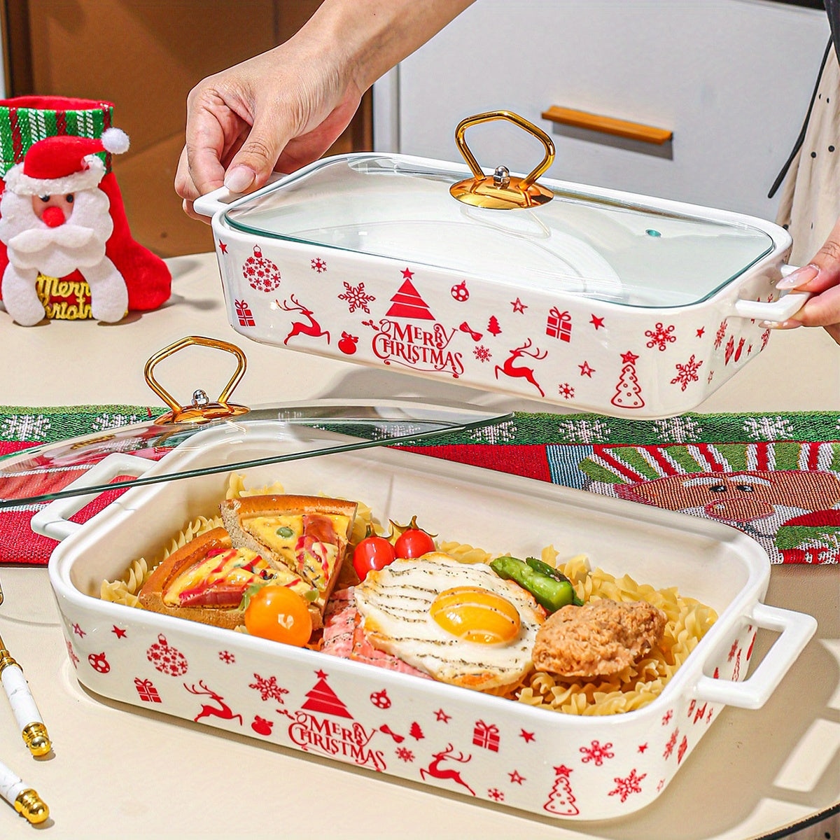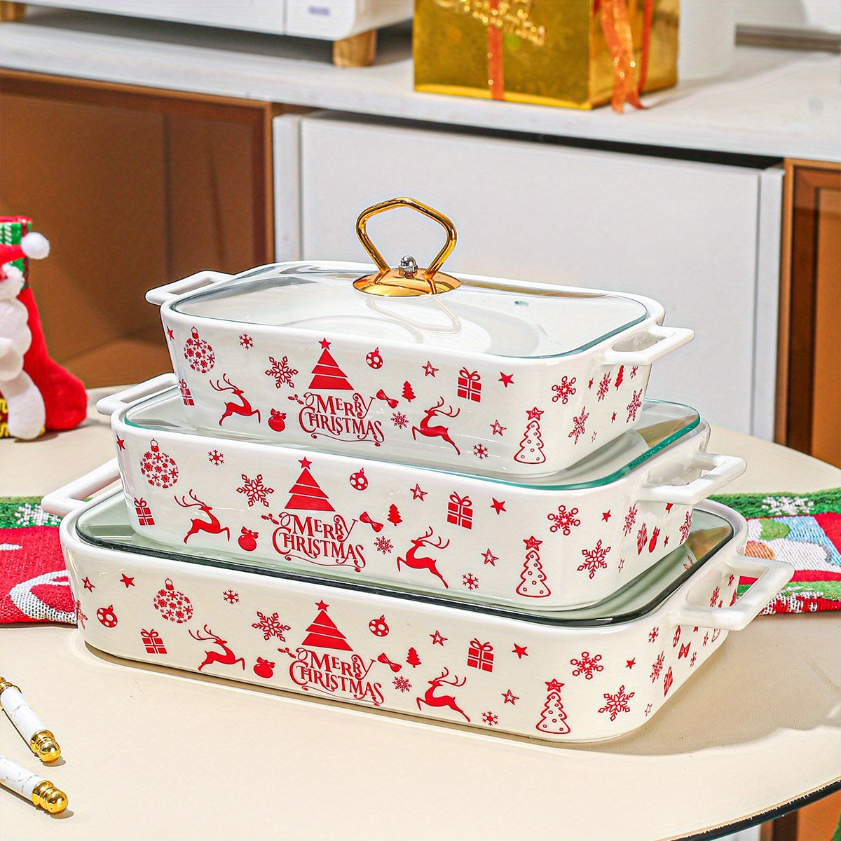 1 штука, набор из 3 рождественских керамических тарелок для вечеринки, домашней кухонной посуды. Включает супницу, кастрюлю для запекания, термопот и кастрюлю с крышкой.
