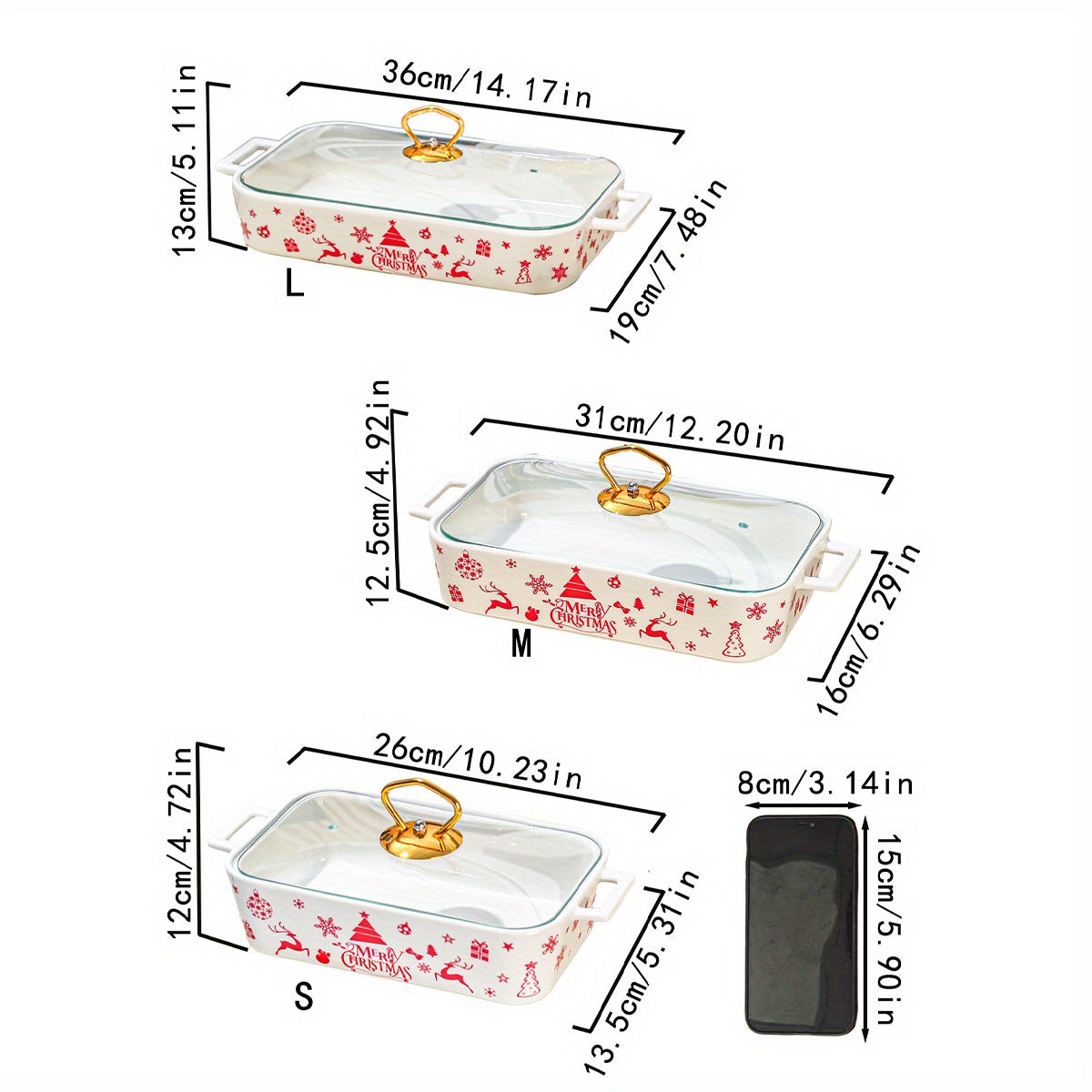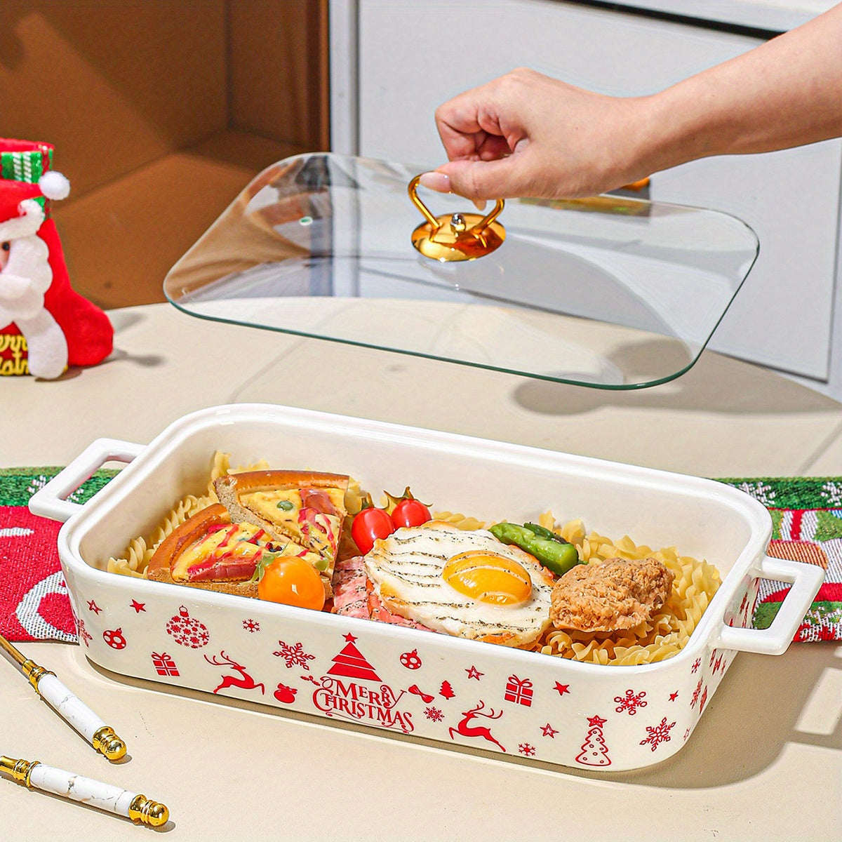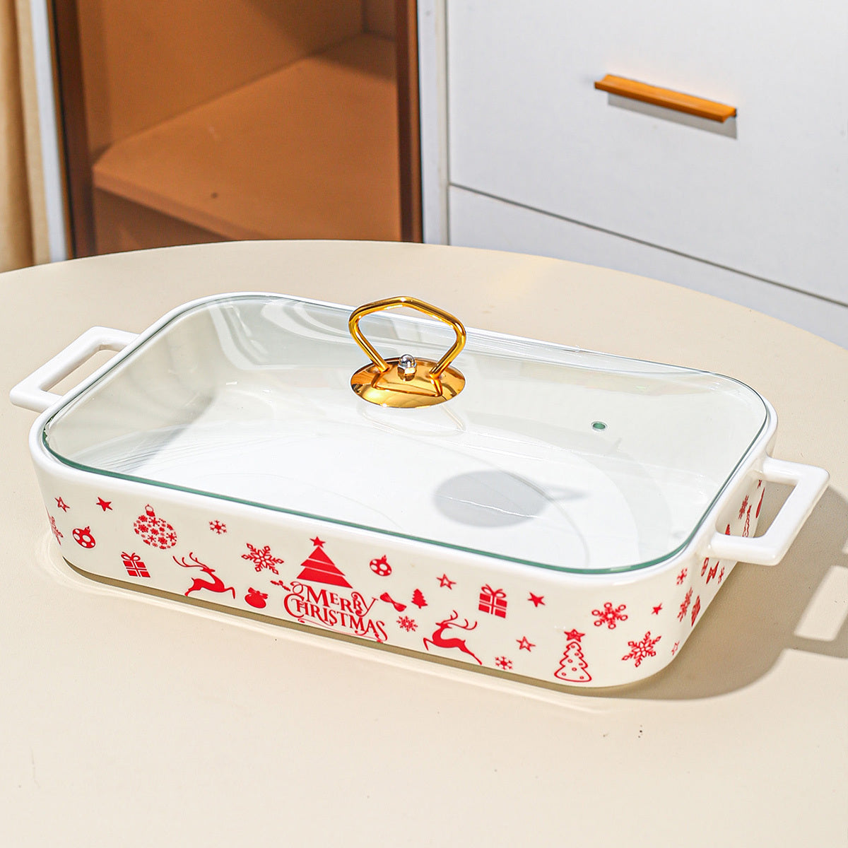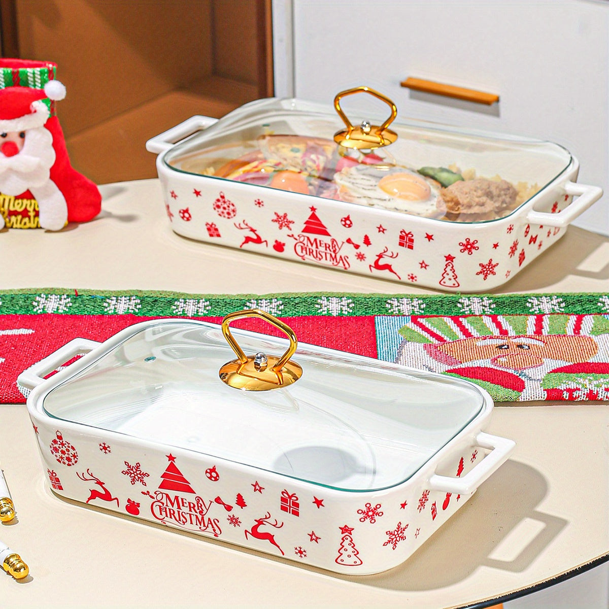 1 штука, набор из 3 рождественских керамических тарелок для вечеринки, домашней кухонной посуды. Включает супницу, кастрюлю для запекания, термопот и кастрюлю с крышкой.