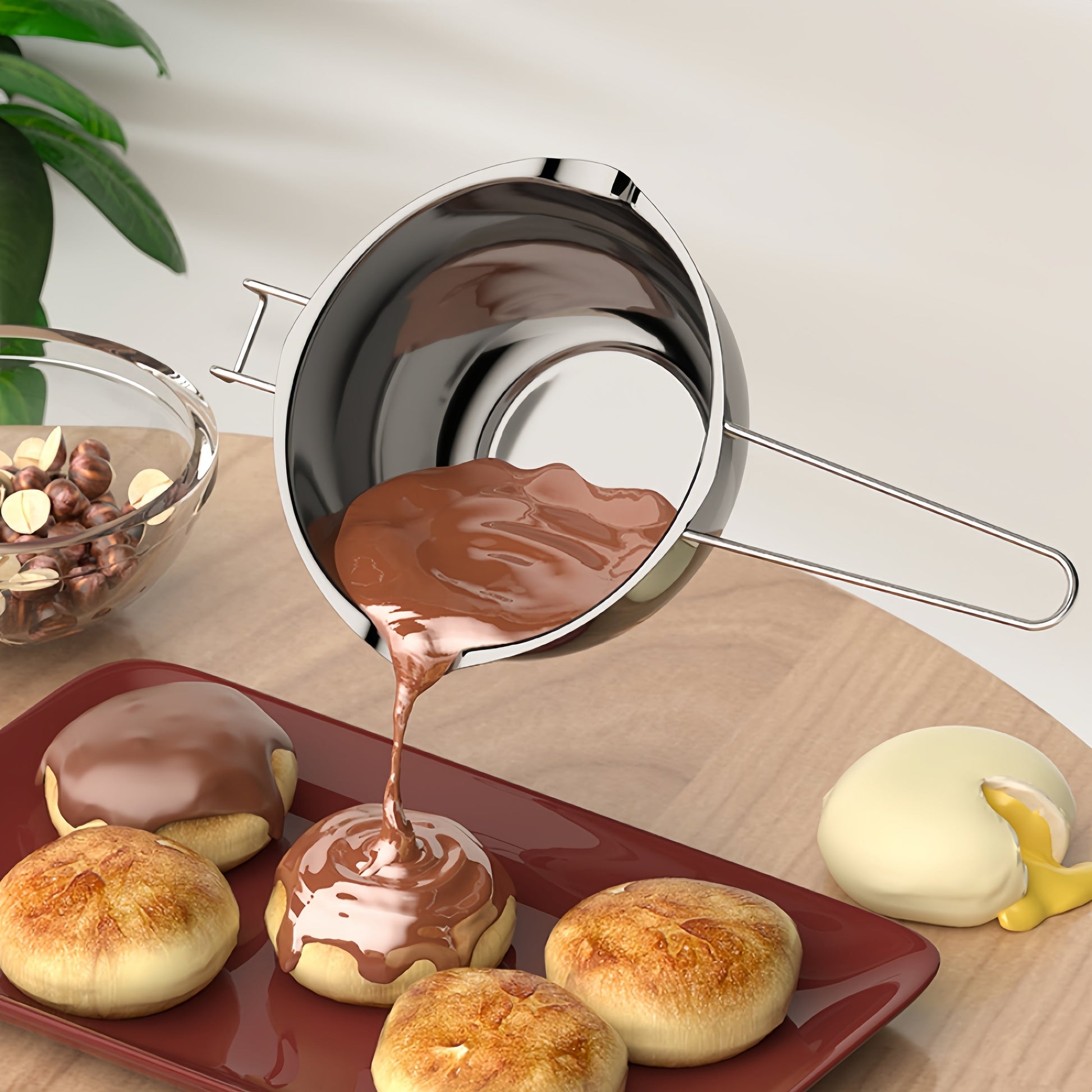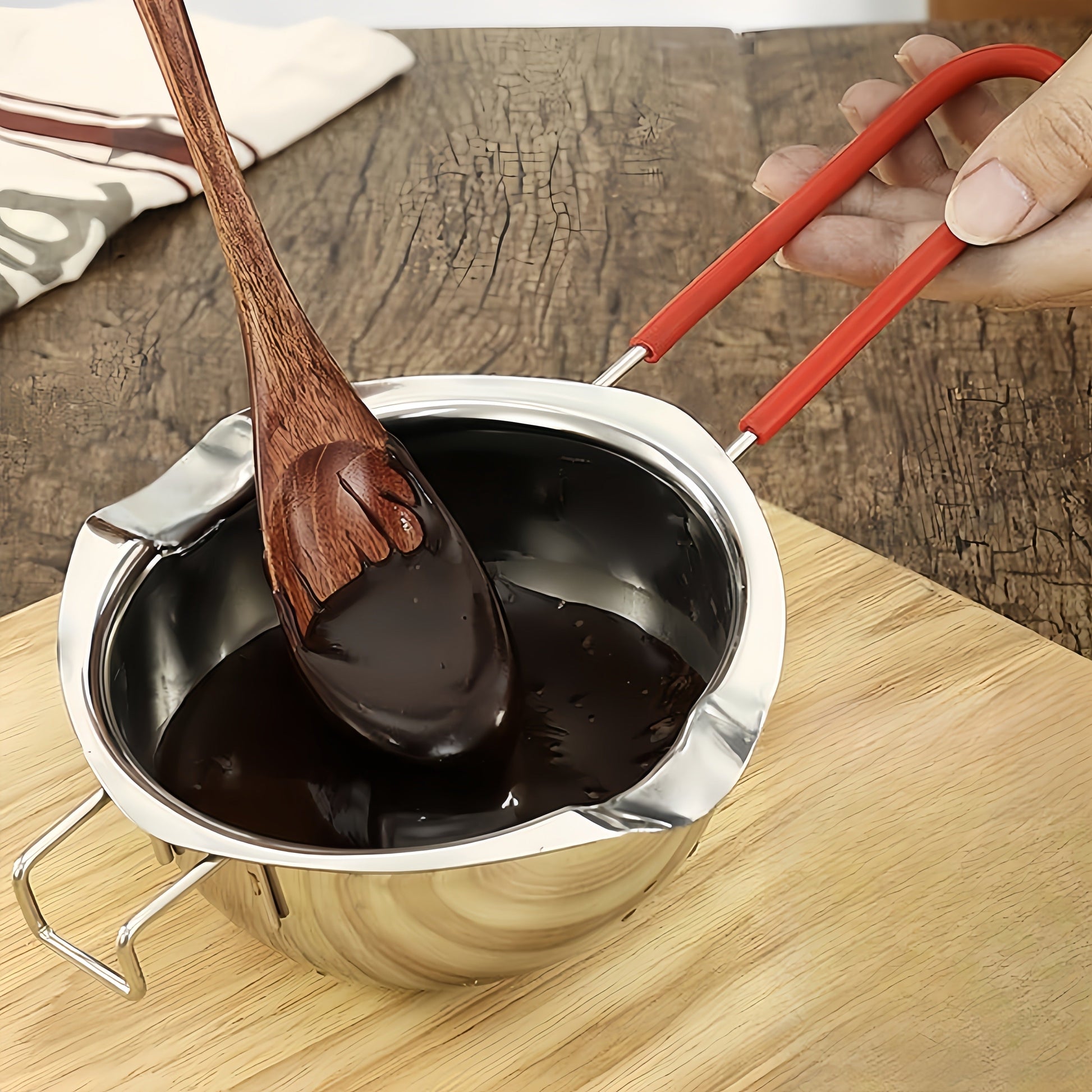 1-шт. нержавеющая сталь двойной котелок идеально подходит для растапливания шоколада, подогрева масла, брызг масла, нагрева масла и растапливания воска. Универсальный кухонный инструмент, который является незаменимым гаджетом и аксессуаром для кухни.