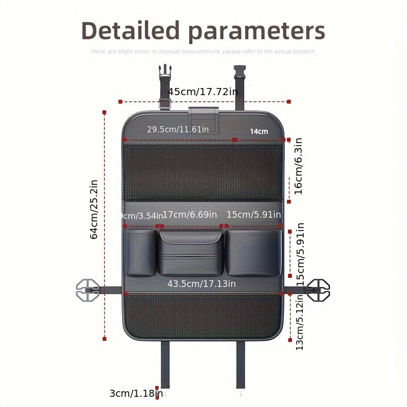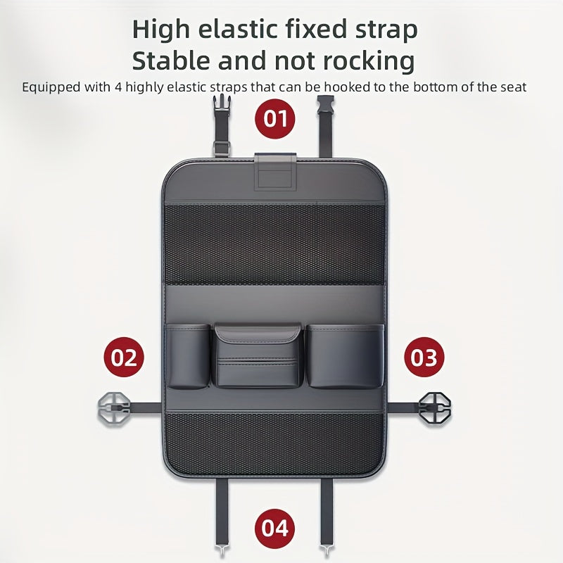 1 сумка для хранения из PU-кожи, вешаемая на спинку сиденья, с большой вместимостью, столом для обеда и универсальной совместимостью.