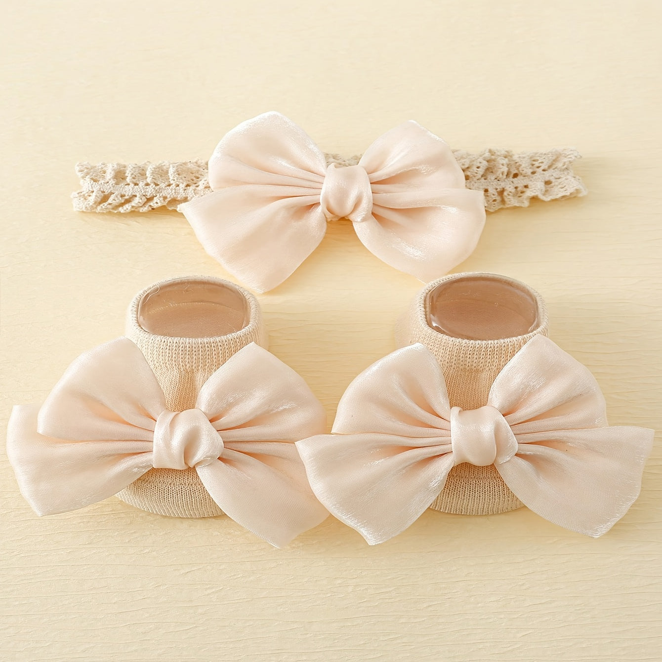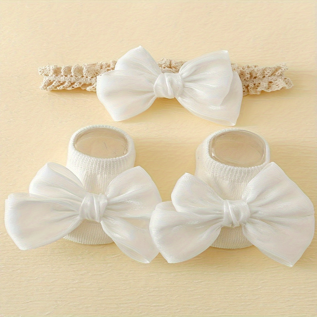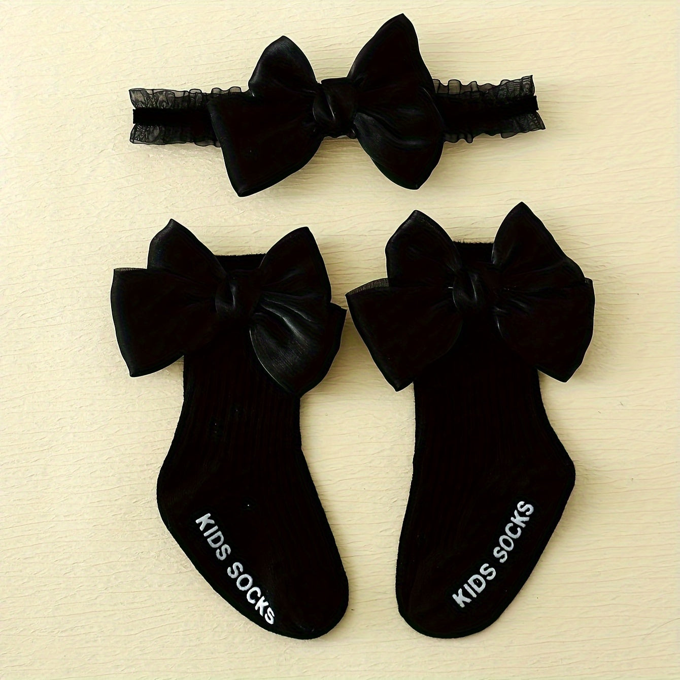 Набор носков и повязки для девочки-ребенка: дышащие хлопковые носки с бантом и аксессуар для волос