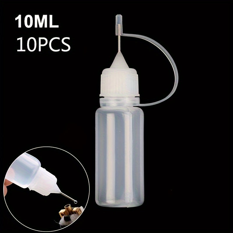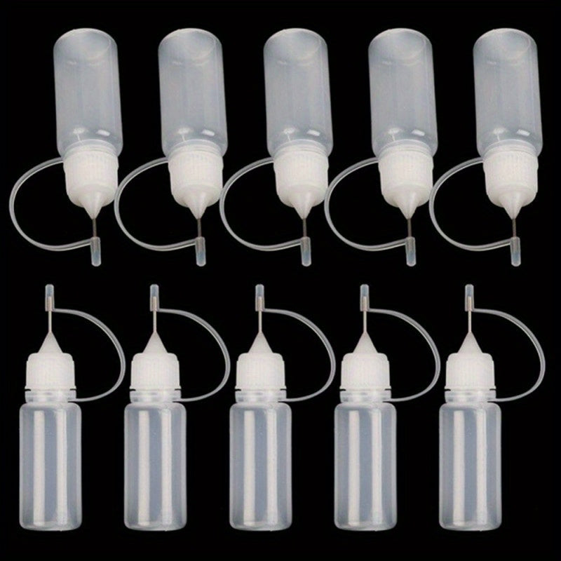 10 штук по 10 мл пластиковых бутылочек для клея с игольчатыми наконечниками для рукоделия и хранения