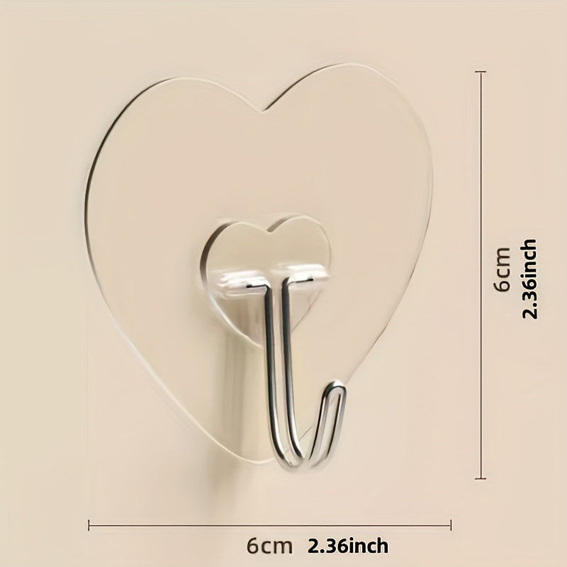 10-штук тяжелых прозрачных пластиковых крючков с клеевым основанием в форме сердца для крепления на стену, для кухни и ванной