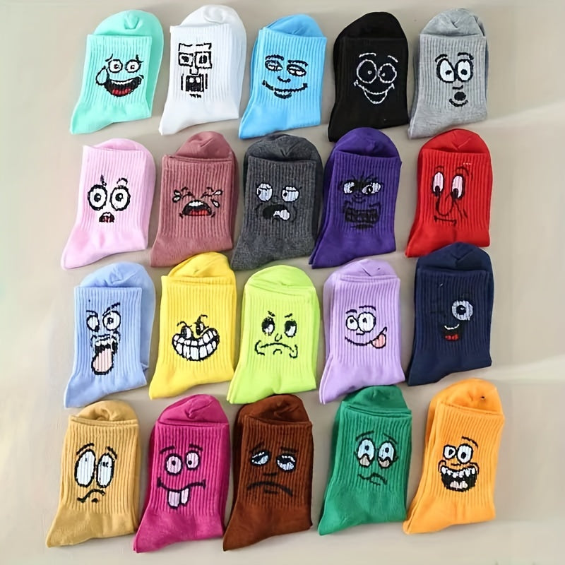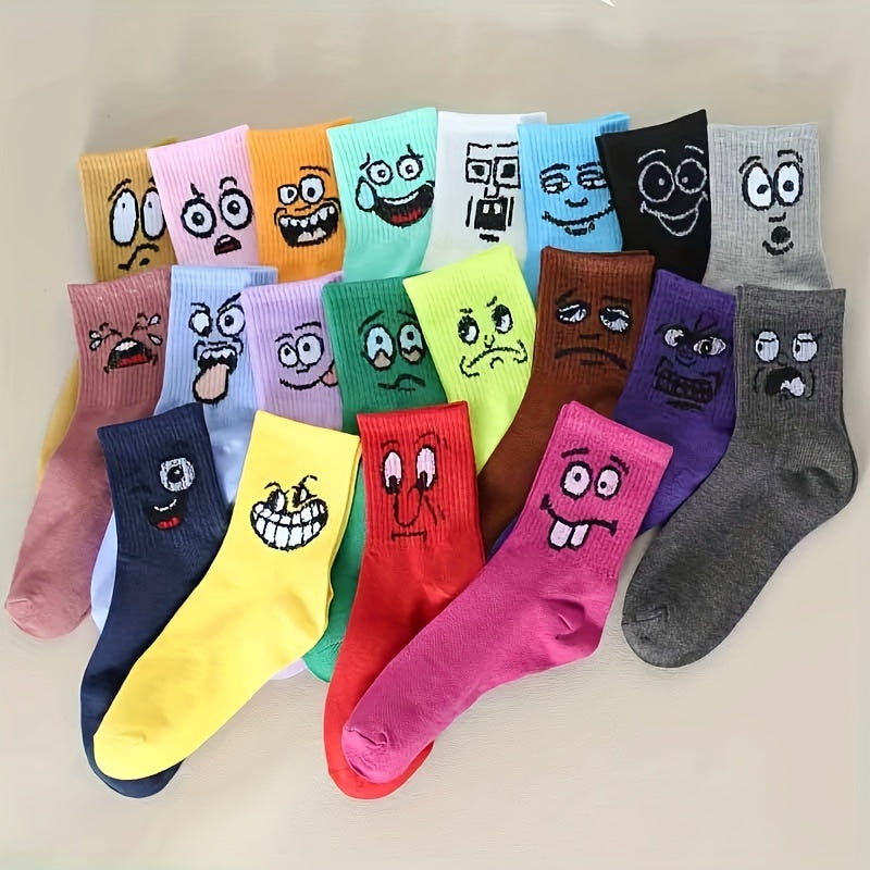 10 пар ярких средних носок с милыми мультяшными выражениями, идеально подходящих для женского чулочного ассортимента.