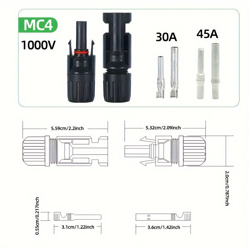 10 пар водонепроницаемых разъемов кабеля солнечной панели MC4 с ключами, номинальное напряжение 1000 В, 30 А, 45 А