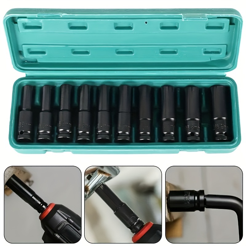 Набор головок для ударных гайковертов Deep Drive, 10 шт., 1/2 дюйма, 8-24 мм, из углеродистой стали
