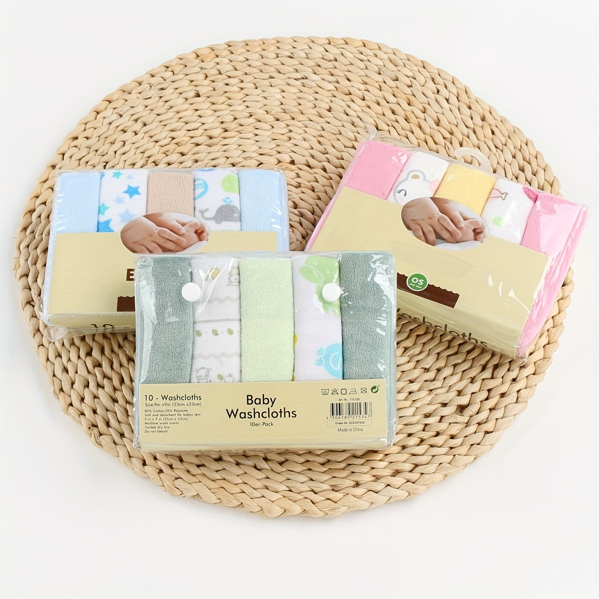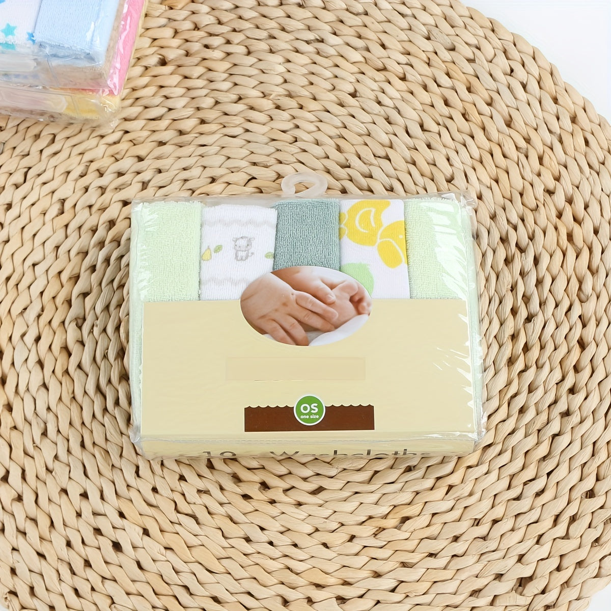 10 штук детских полотенец, мочалок и слюнявчиков в смеси многоцветных оттенков.