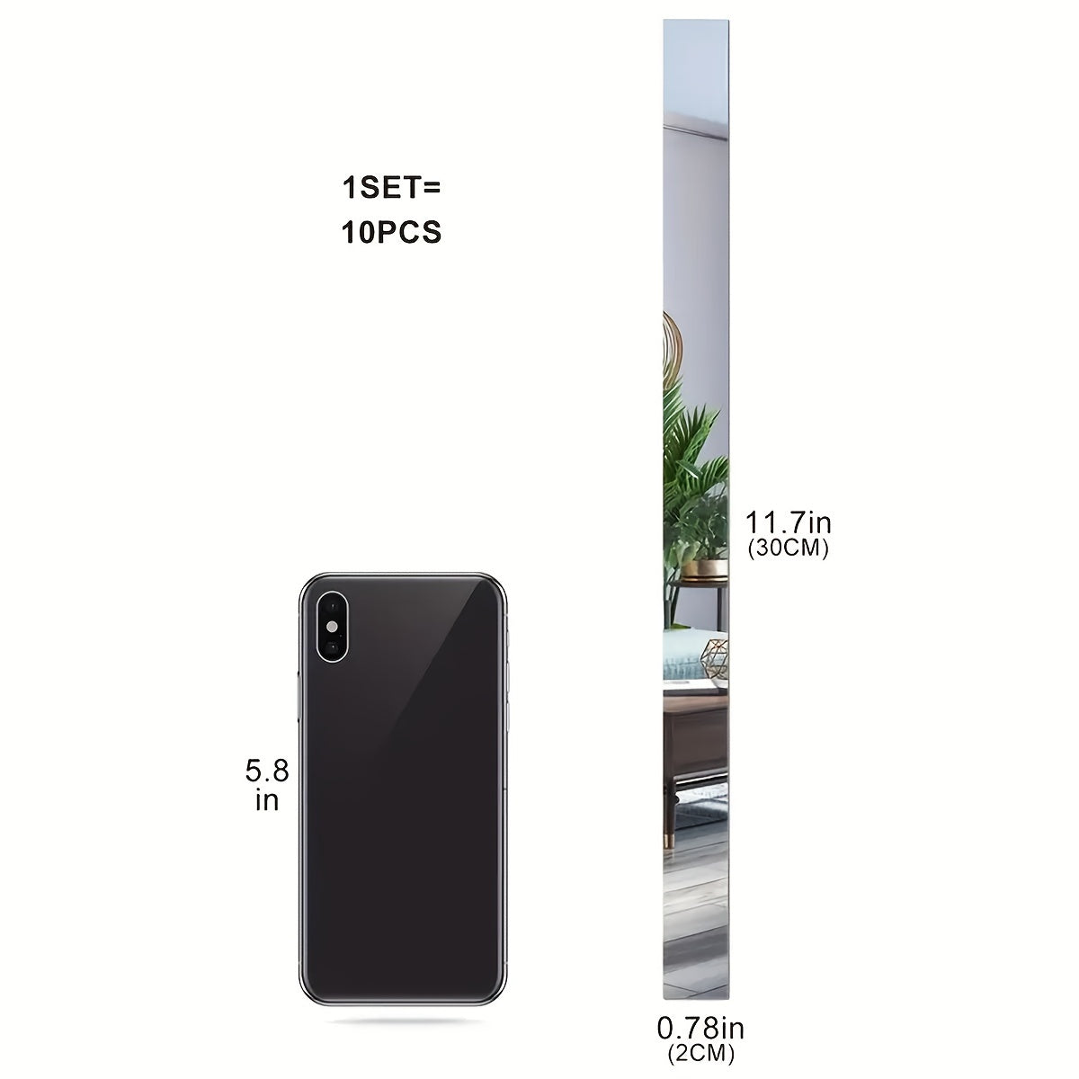 10 серебристых зеркальных декоративных полос самоклеящаяся настенная живопись для домашнего декора