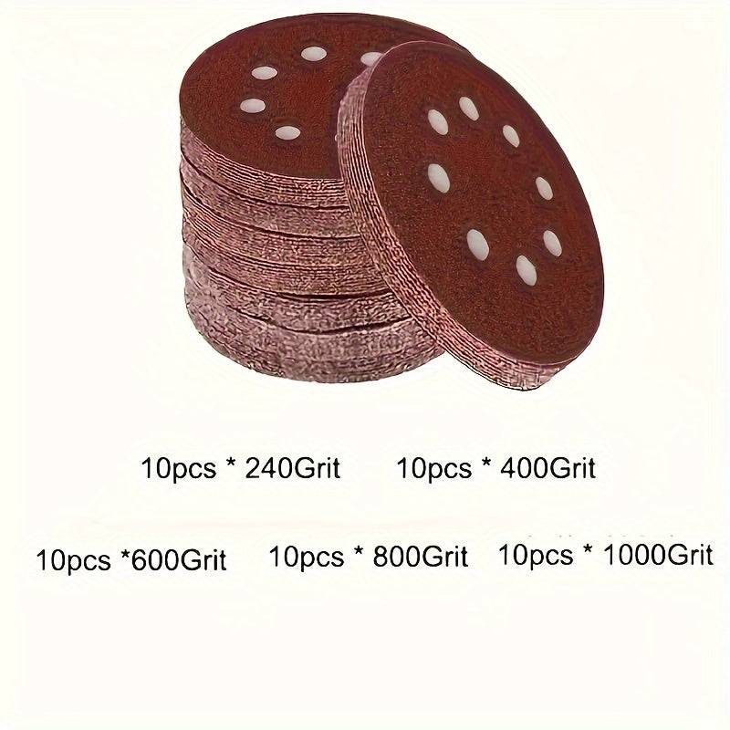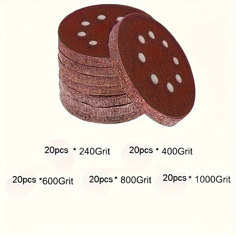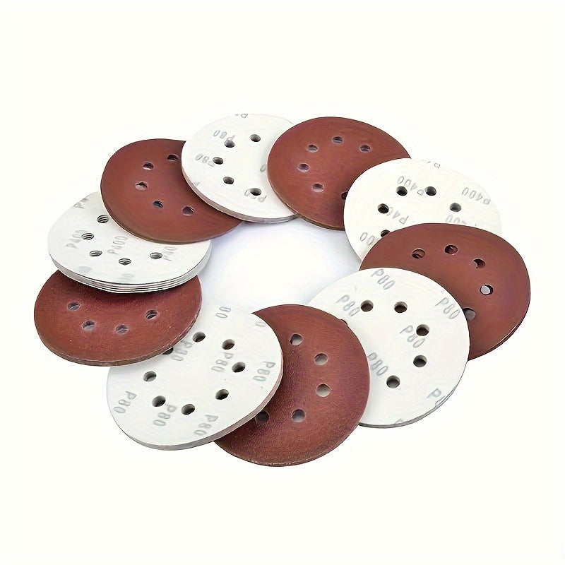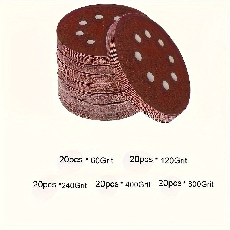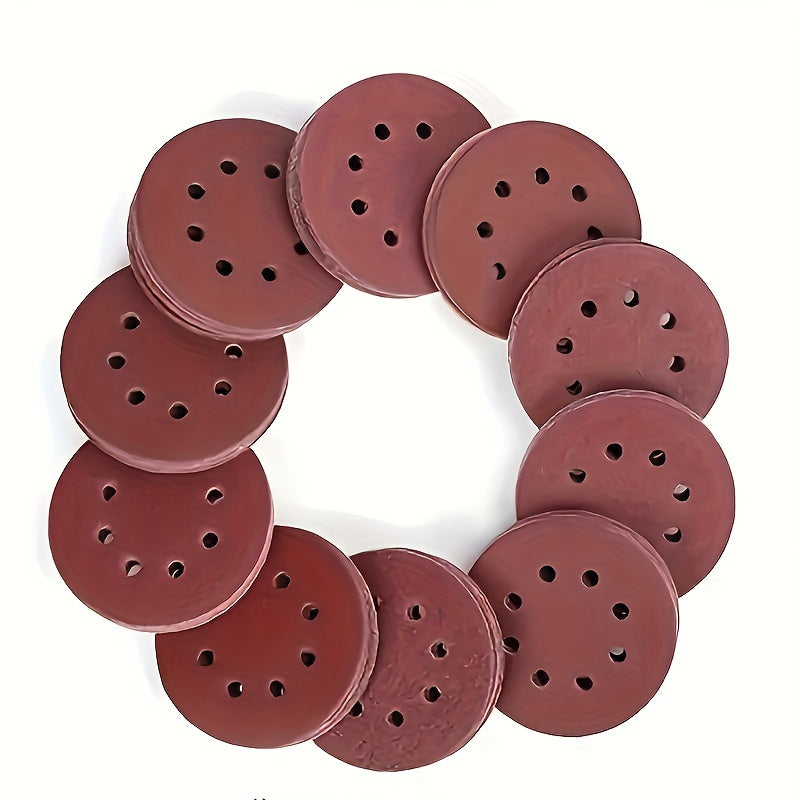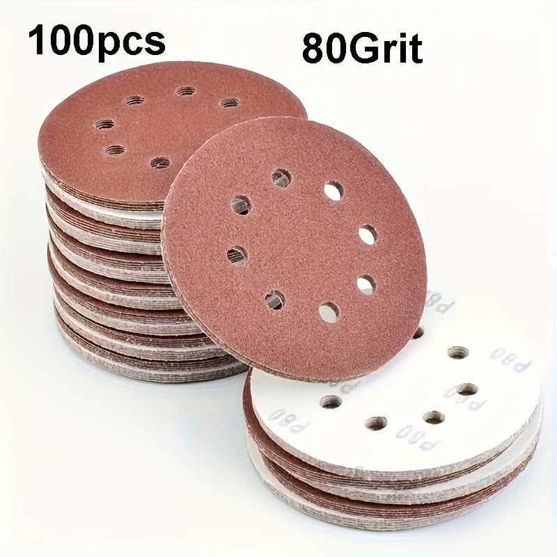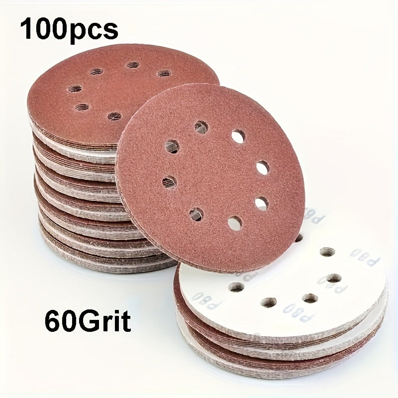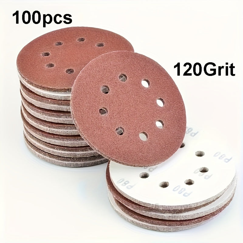 100 круговых шлифовальных листов 5 дюймов (125 мм) с 8 отверстиями, системой крючка и петли, используемых для полировки.