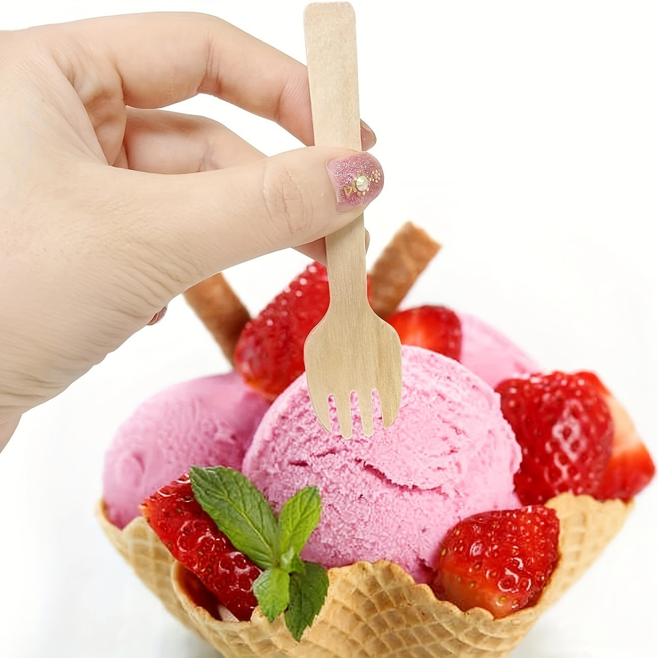 100 одноразовых мини-вилок из березовой древесины размером 10,16 см, идеально подходят для вечеринок и встреч, таких как Марди Гра, выпускные, дни рождения, Рождество, свадьбы и кемпинг. Идеально подходит для подачи торта, десерта и мороженого.