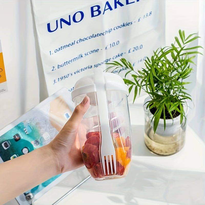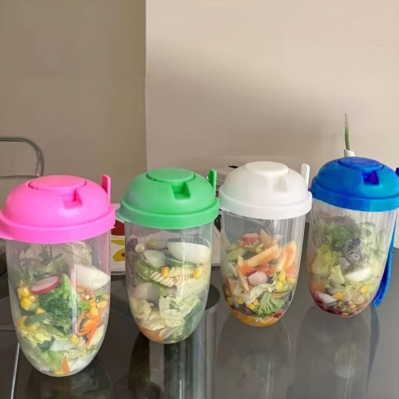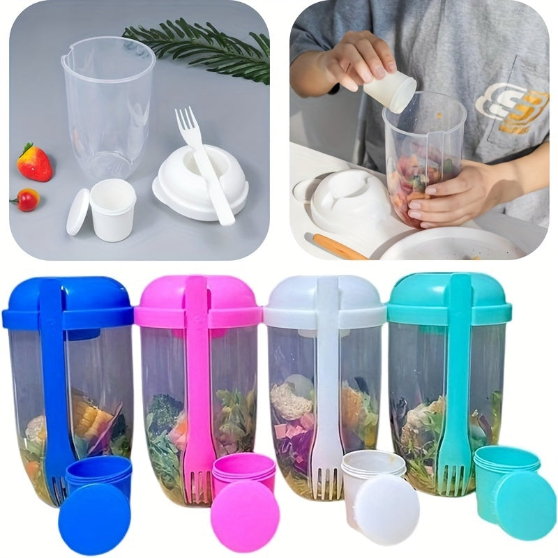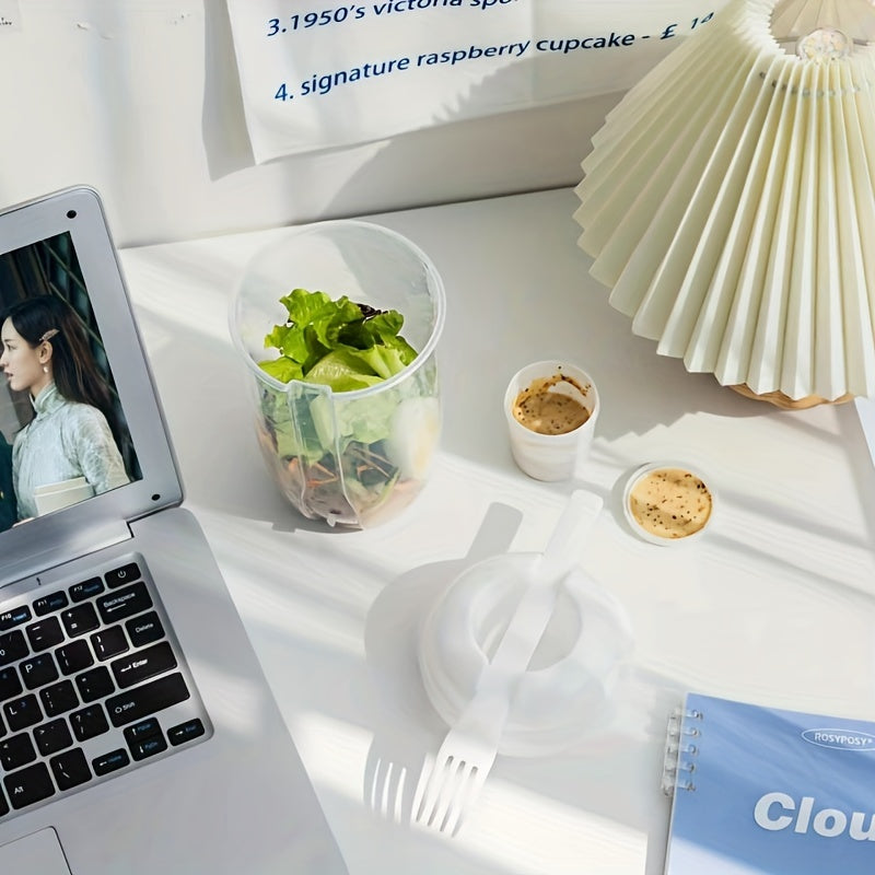 1000 мл салатный контейнер из пластика без BPA, овальной формы, с держателем для заправки и вилкой для овощей и фруктов на ходу