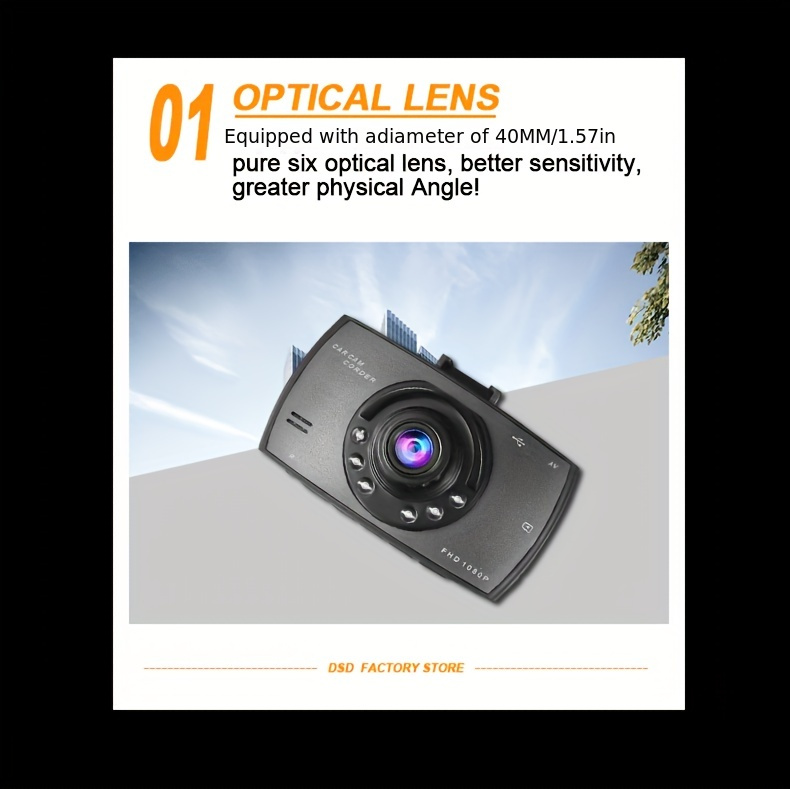 1080P HD Видеорегистратор передней панели автомобиля с широким углом обзора, ночным видением, циклической записью