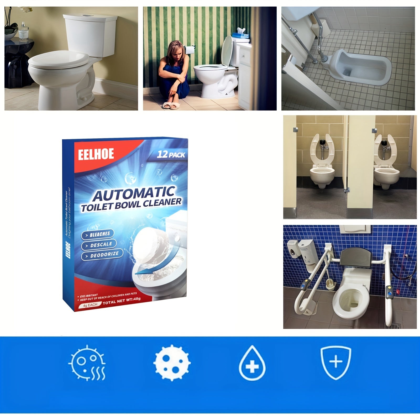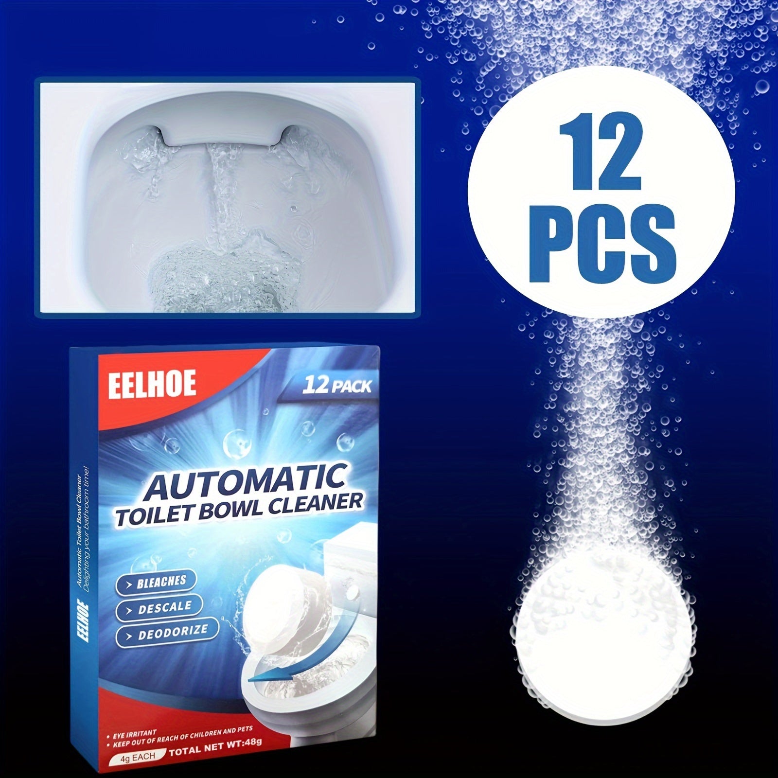 12/24 таблетки для чистки туалета - мощное средство для удаления накипи, удаления желтых пятен и запахов, таблетка для глубокой очистки, для чистого и свежего туалета. Необходимые средства и инструменты для уборки.
