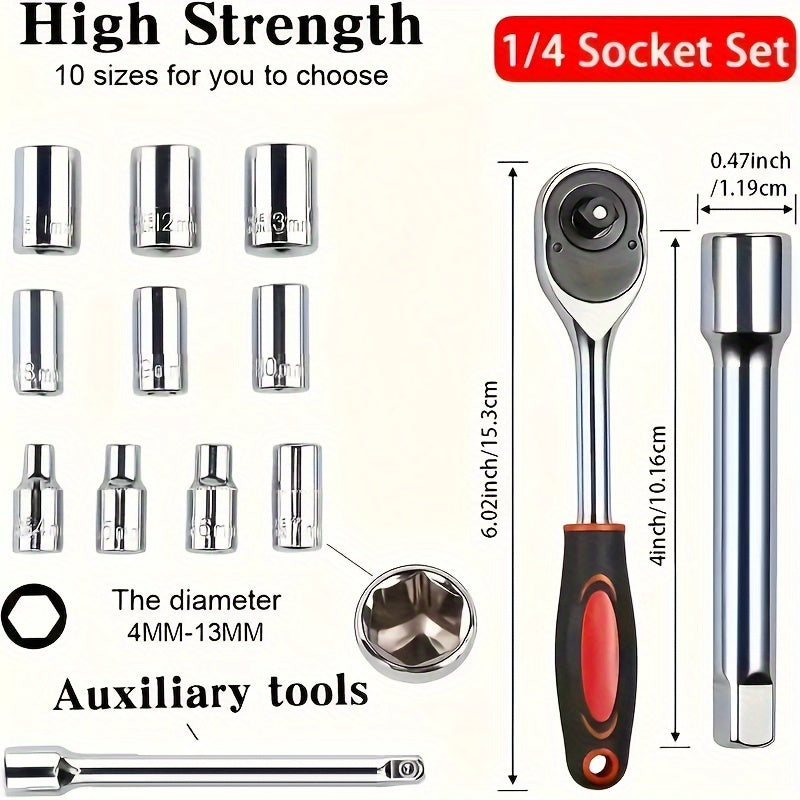 Набор торцевых ключей с трещоткой на 12 предметов с 10 головками 4-13 мм и удлинителем