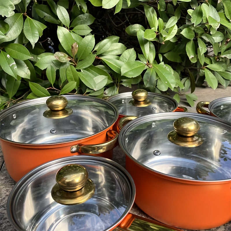 12-шт. набор кухонной посуды UAO из нержавеющей стали с индукционными кастрюлями и крышками. Включает многофункциональную кастрюлю для приготовления здоровых супов, пасты и морепродуктов. Идеальный подарок на новоселье или Рождество для дома и ресторанов.