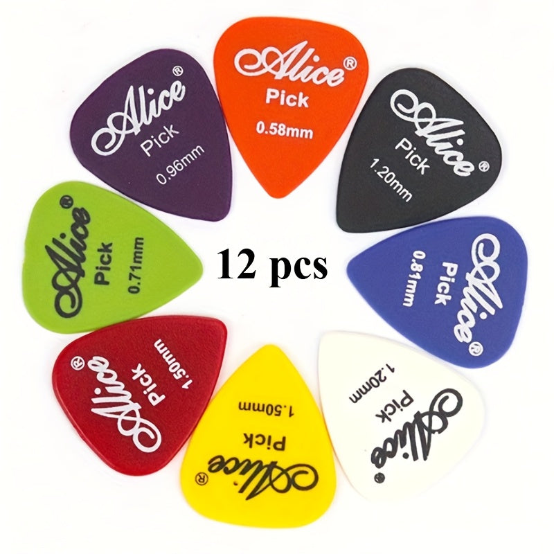 Набор из 12 медиаторов для гитары для акустической, электрической и бас-гитары, прочный ABS, разная толщина 0,58-1,5 мм