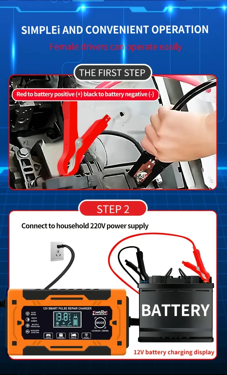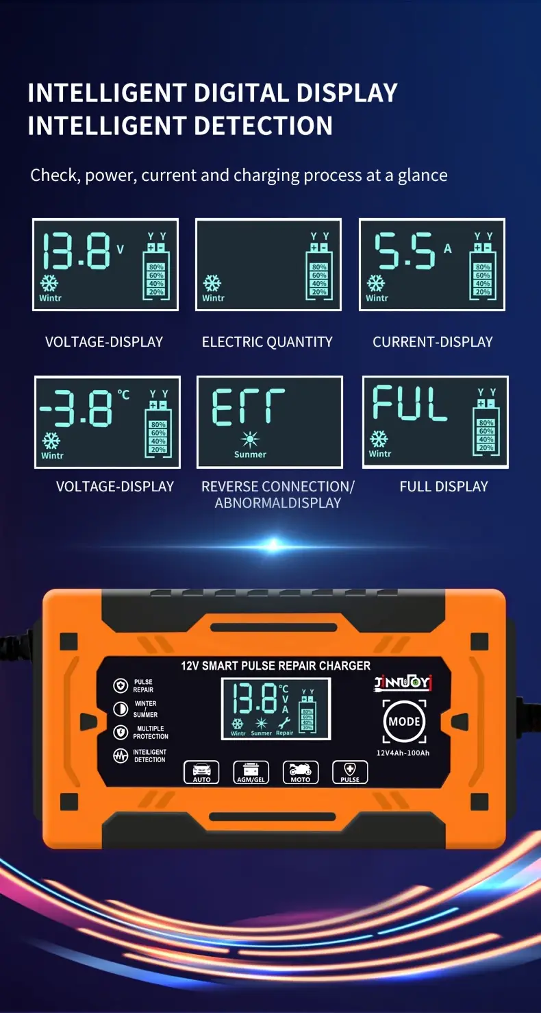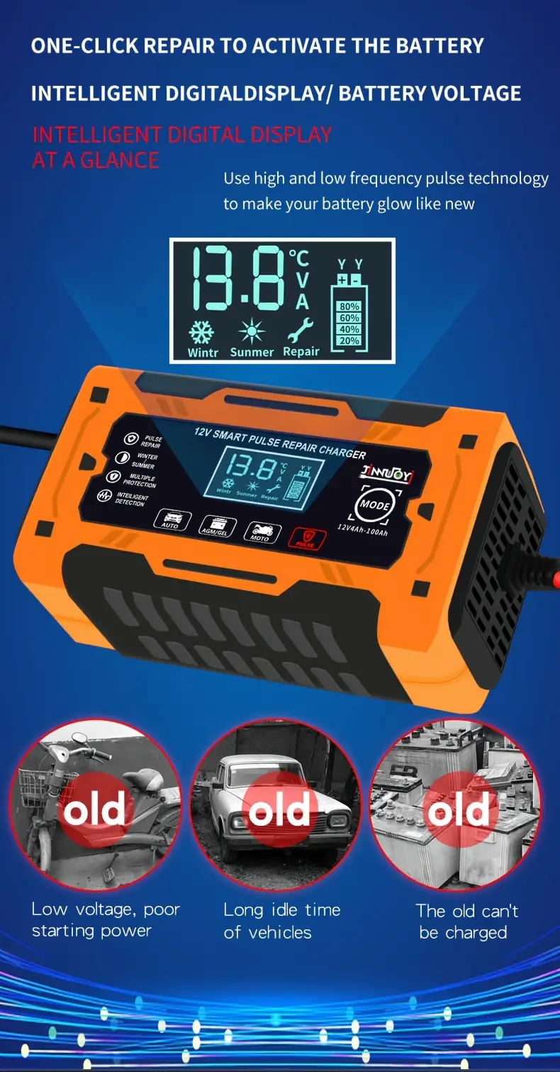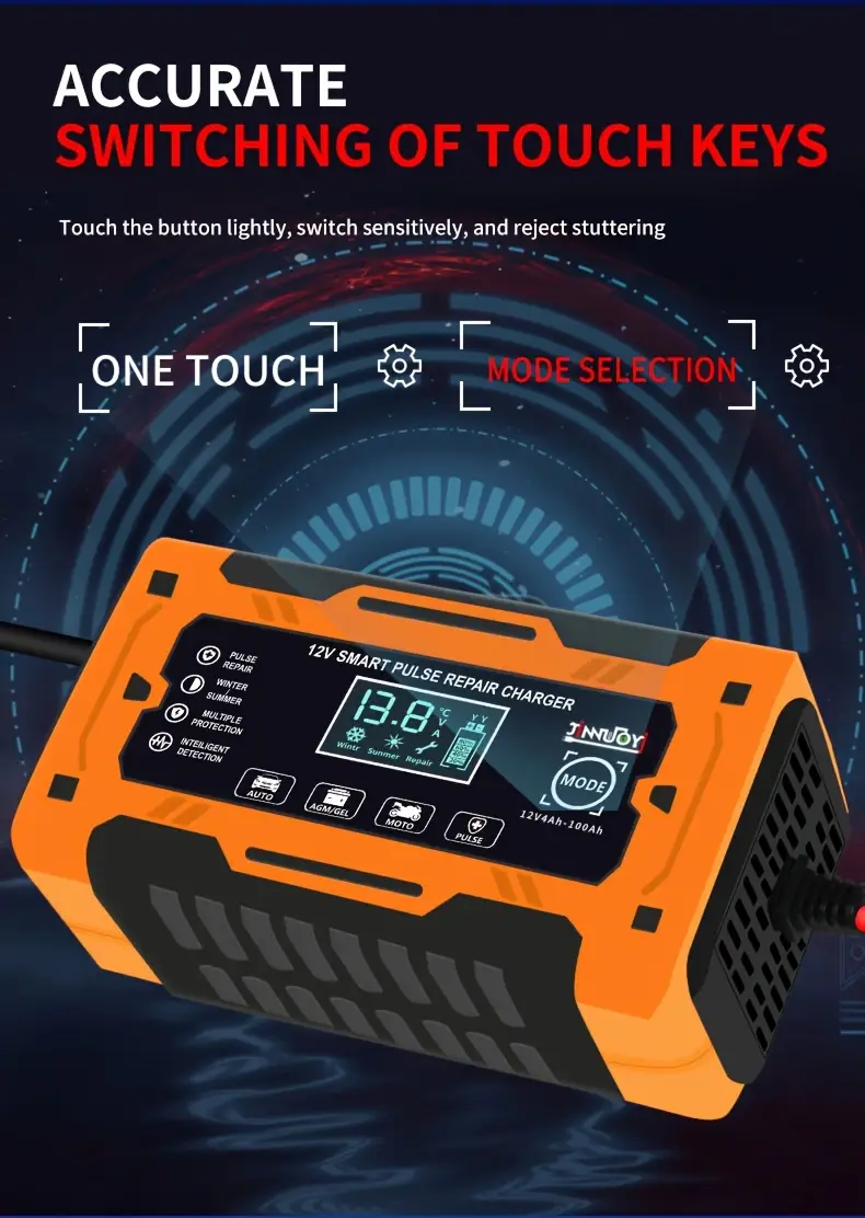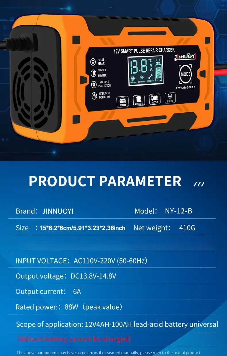 12V 6A полностью автоматическое зарядное устройство для аккумуляторов с ЖК-дисплеем и быстрой зарядкой