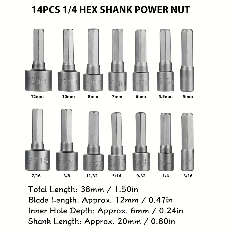 Набор магнитных головок-торцевых ключей с шестигранным хвостовиком из 14 шт. с удлинительным адаптером из стали