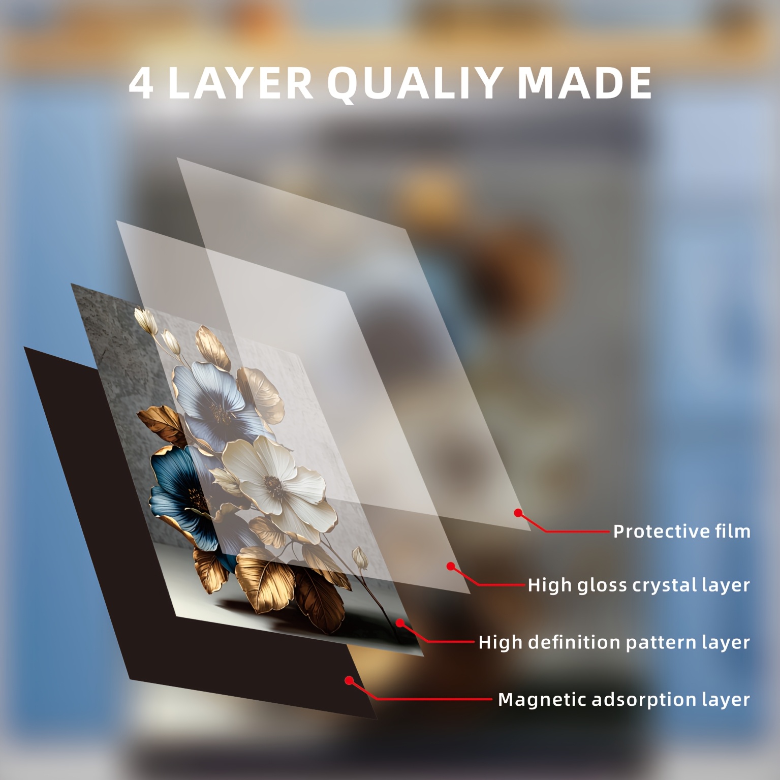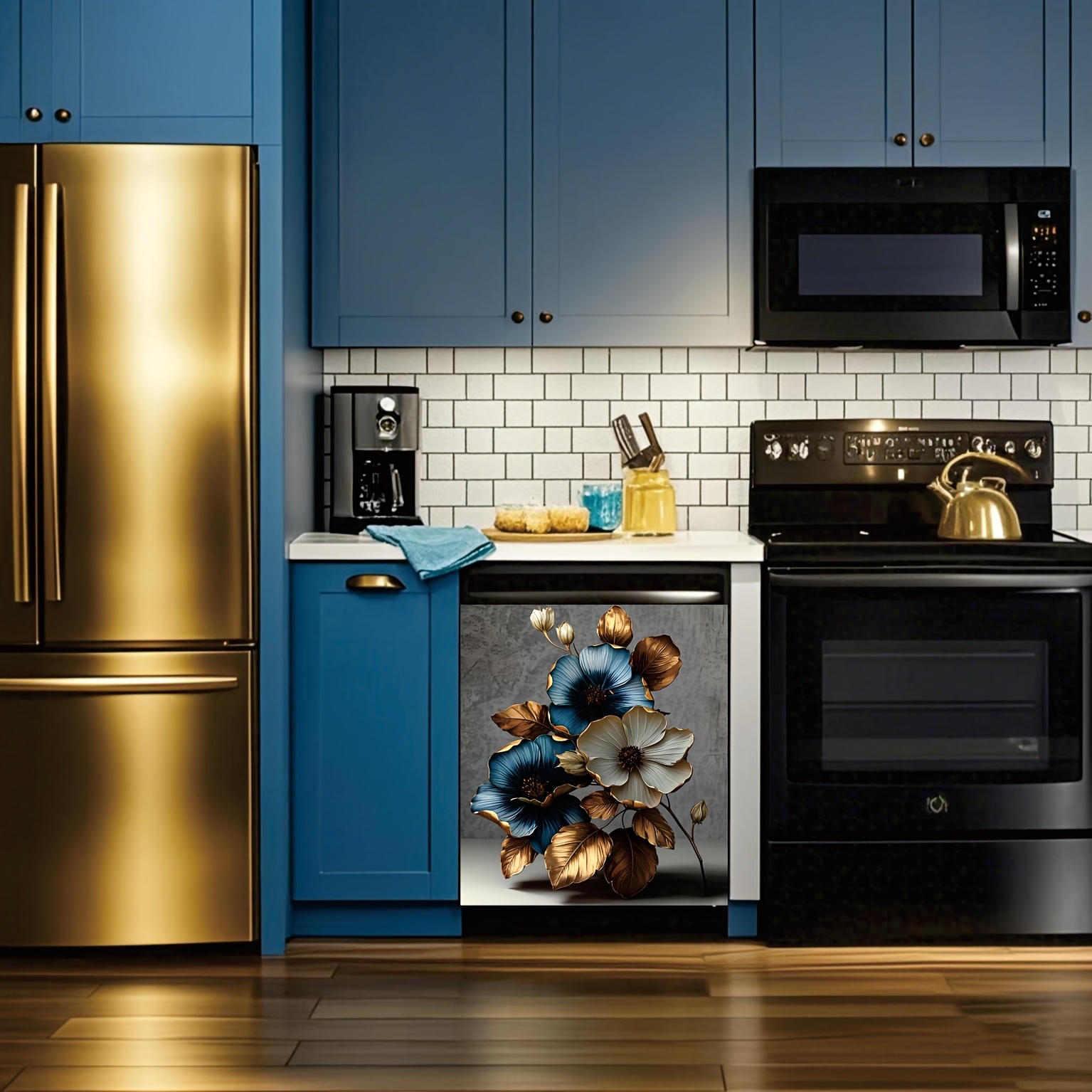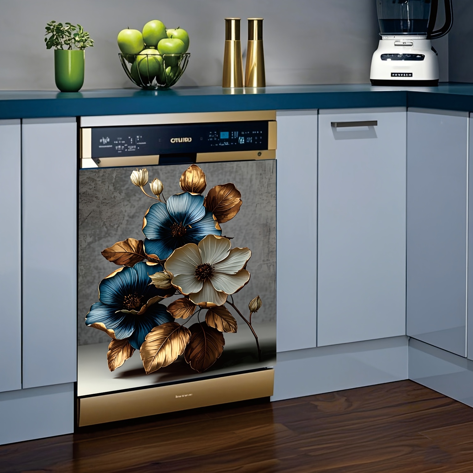 2D плоская золотая синяя белая лотосовая цветочная наклейка на дверь посудомоечной машины для украшения железной поверхности