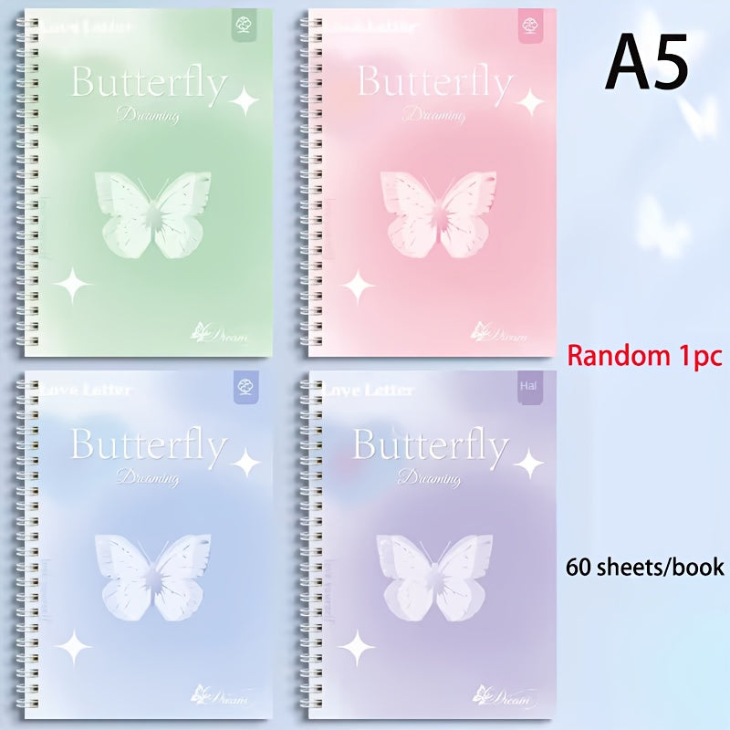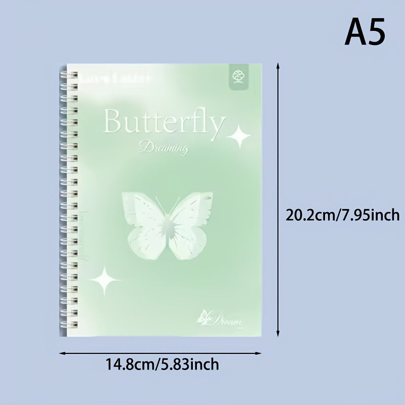 Тетрадь-спираль с тематикой бабочки A5, с точечными страницами, плоским переплётом, 60 листов