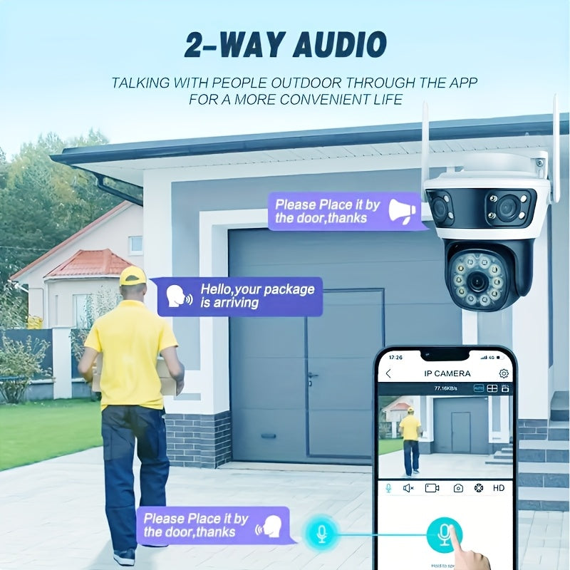 HD умная камера безопасности с 360-градусным панорамным обзором, обнаружением движения, двусторонним звуком, инфракрасным ночным видением, для использования внутри и снаружи
