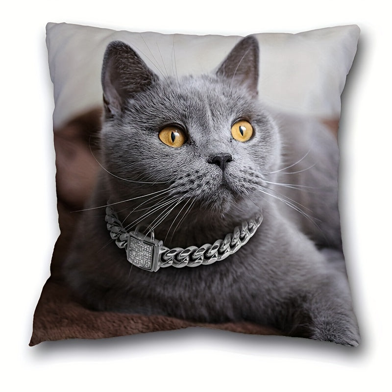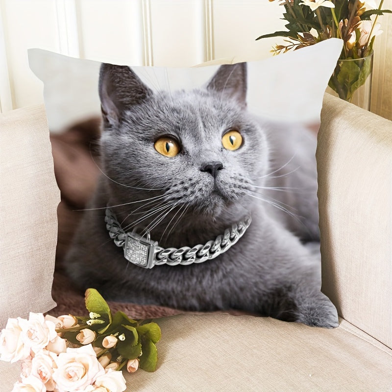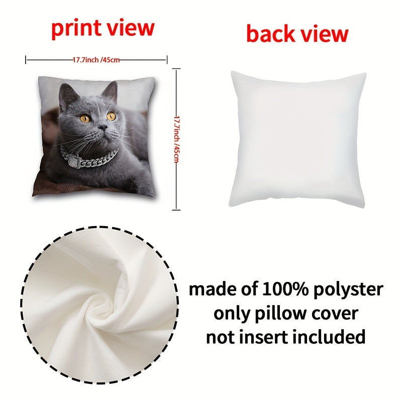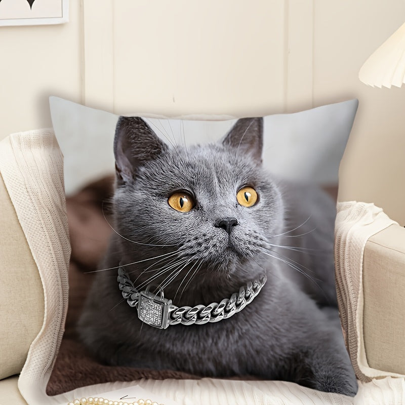 1 шт. Наволочка с кошачьим принтом из короткого плюша (17,7"x17,7") с животной тематикой, идеально подходит для декора дома, комнаты и спальни. В комплект не входит подушка. Отличный архитектурный коллекционный аксессуар.