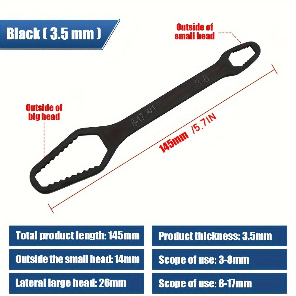 Двухсторонний регулируемый гаечный ключ с самозатягивающимся универсальным инструментом для ремонта для использования внутри и снаружи