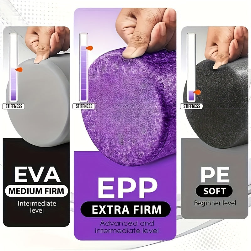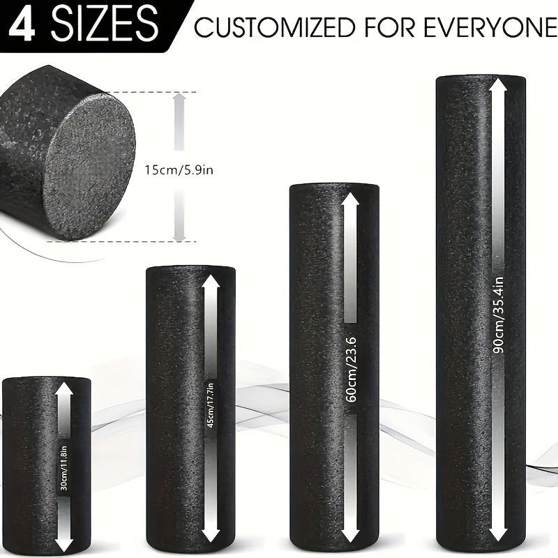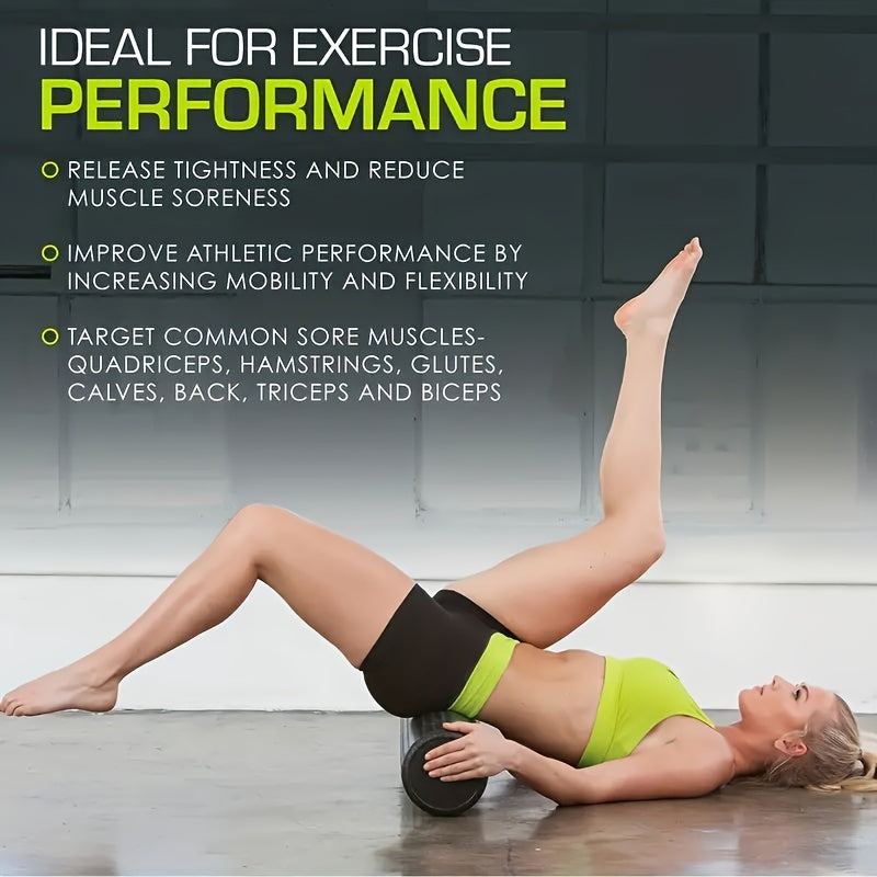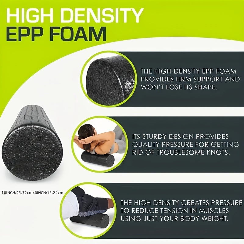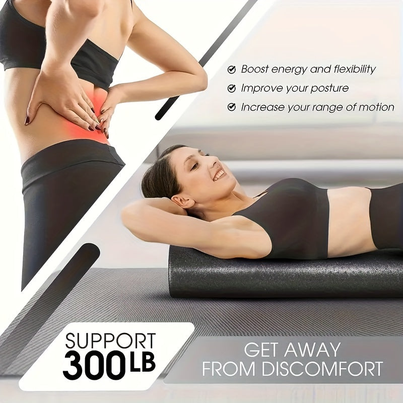 Черный ролик для йоги из высокоплотной пены средней жесткости для растяжки и восстановления мышц