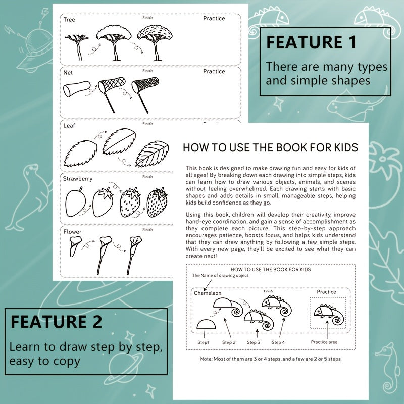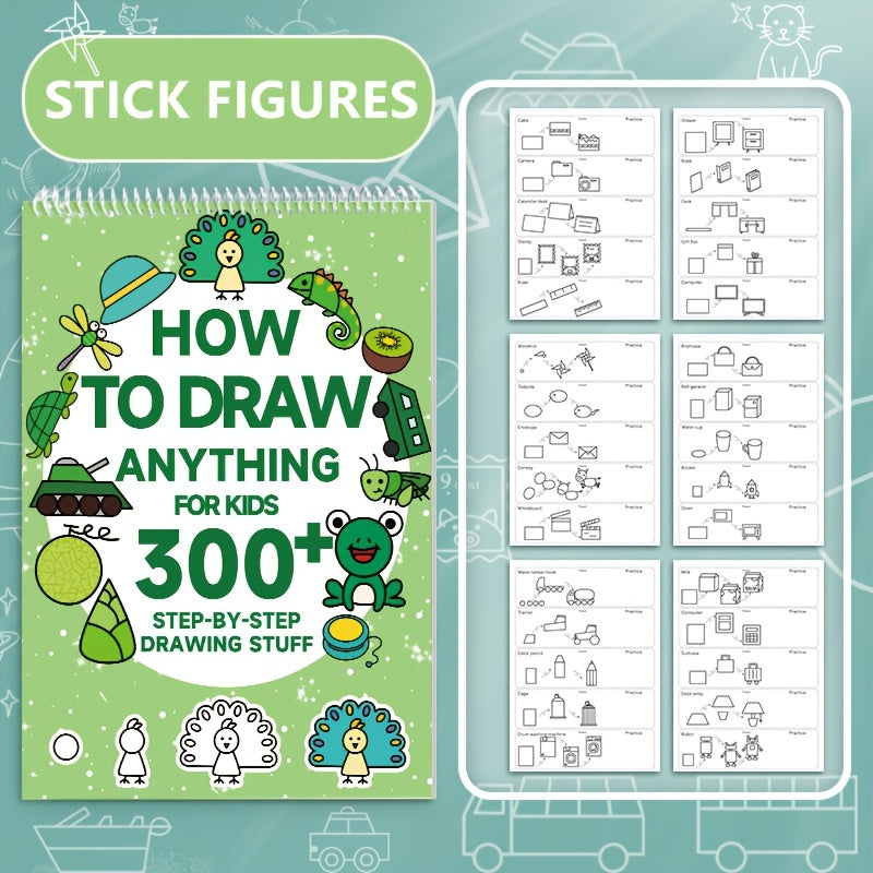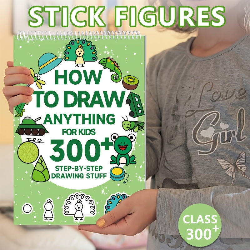 Зеленая книга для рисования для детей от 3 лет и старше с более чем 300 пошаговыми иллюстрациями динозавров и лягушек, спиральный переплет, образовательная художественная игрушка