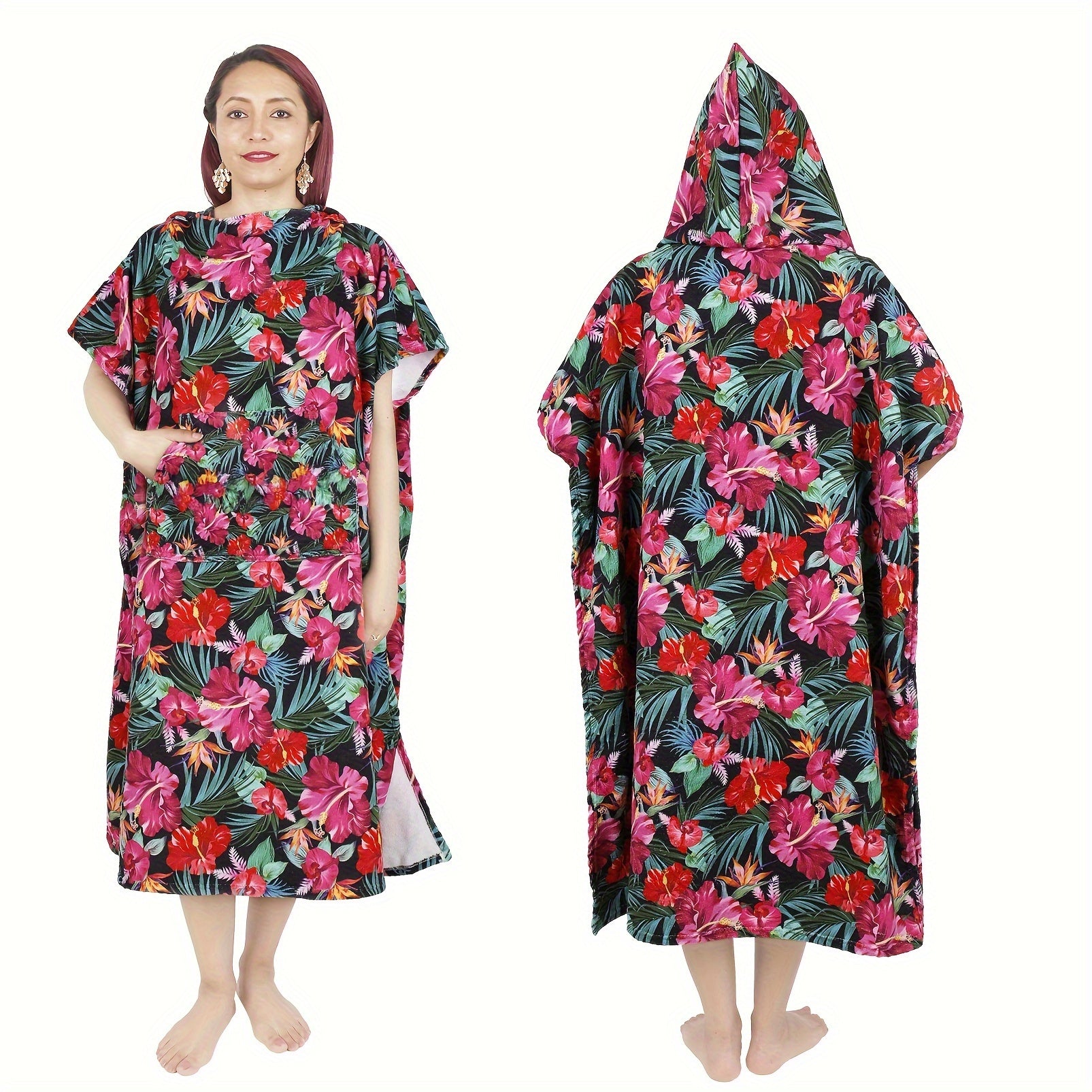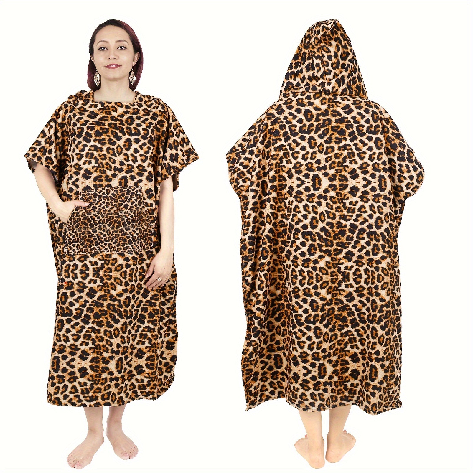 Пеньюар с капюшоном для женщин, мягкий и впитывающий, домашняя одежда с карманами для дома, пляжа, спа