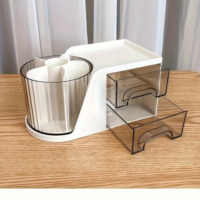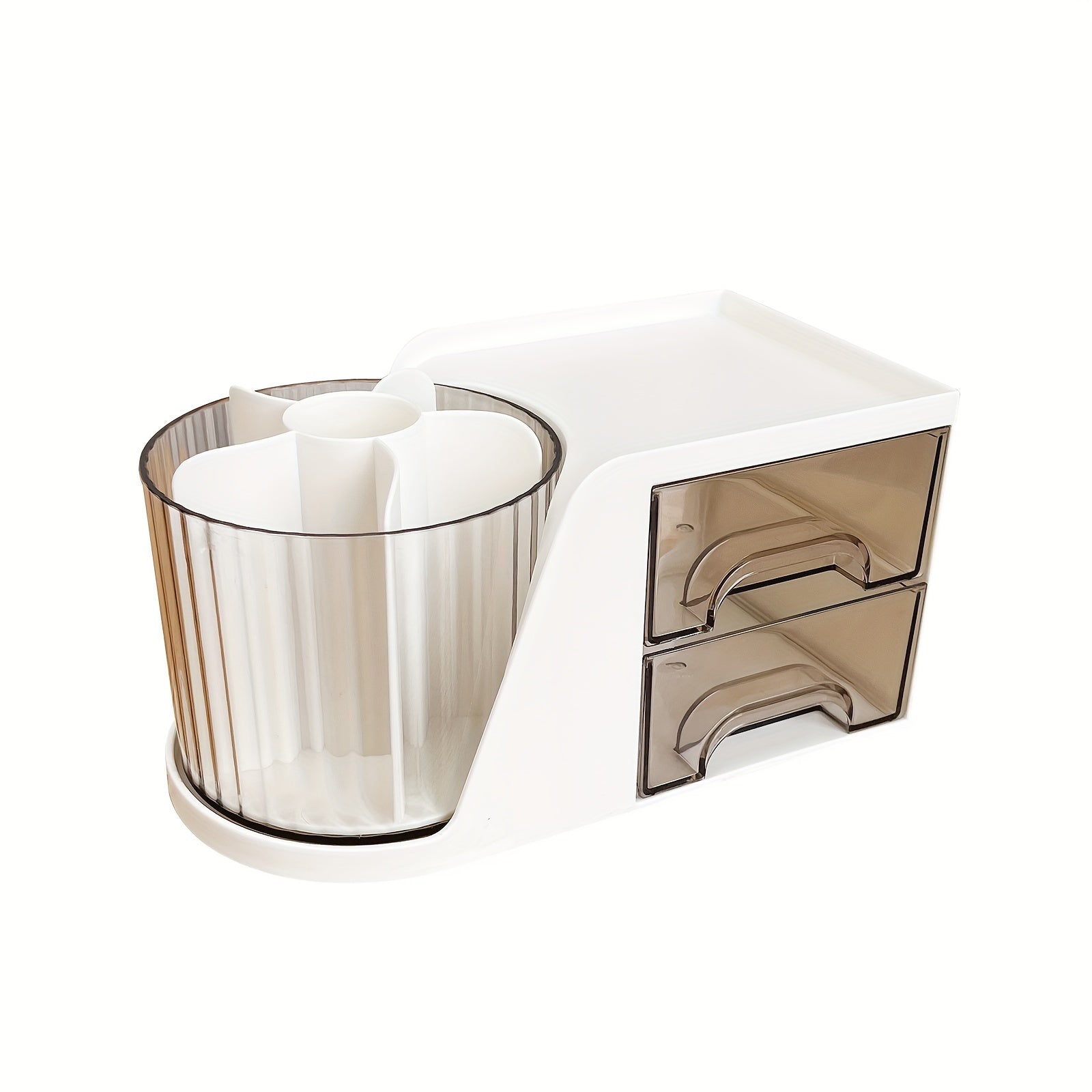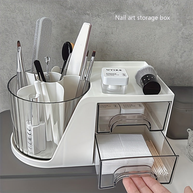 Многофункциональный вращающийся органайзер для макияжа с 5 отделениями для хранения ногтевого искусства, прозрачный, с золотыми акцентами