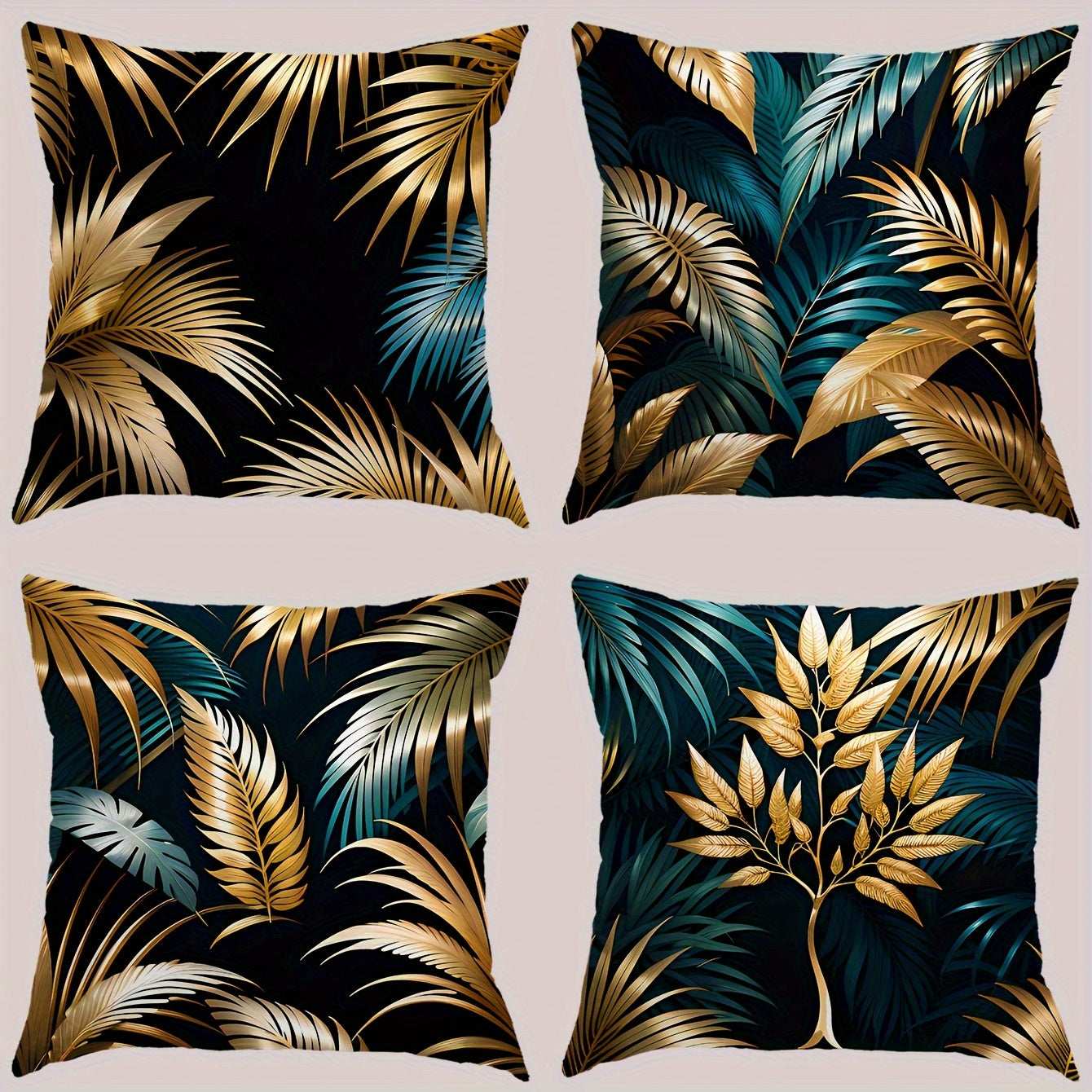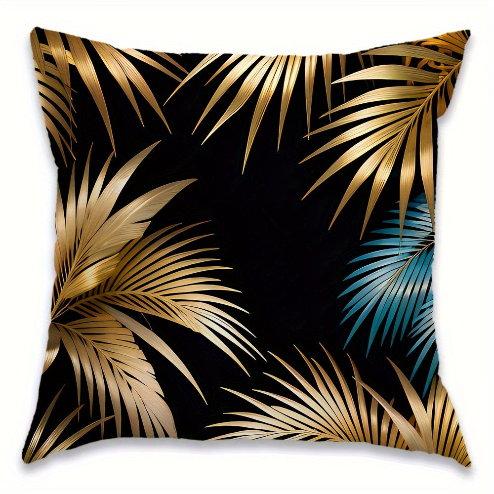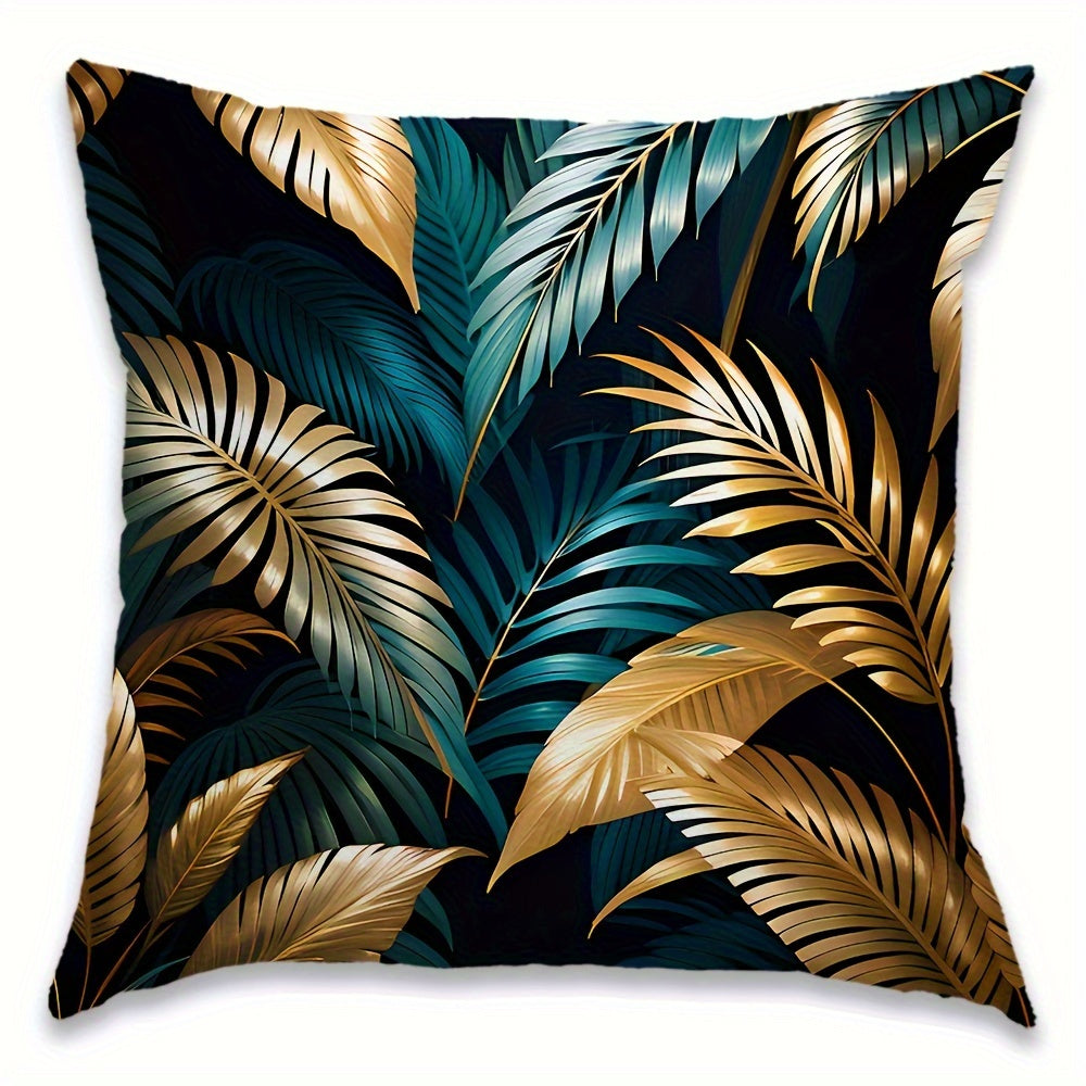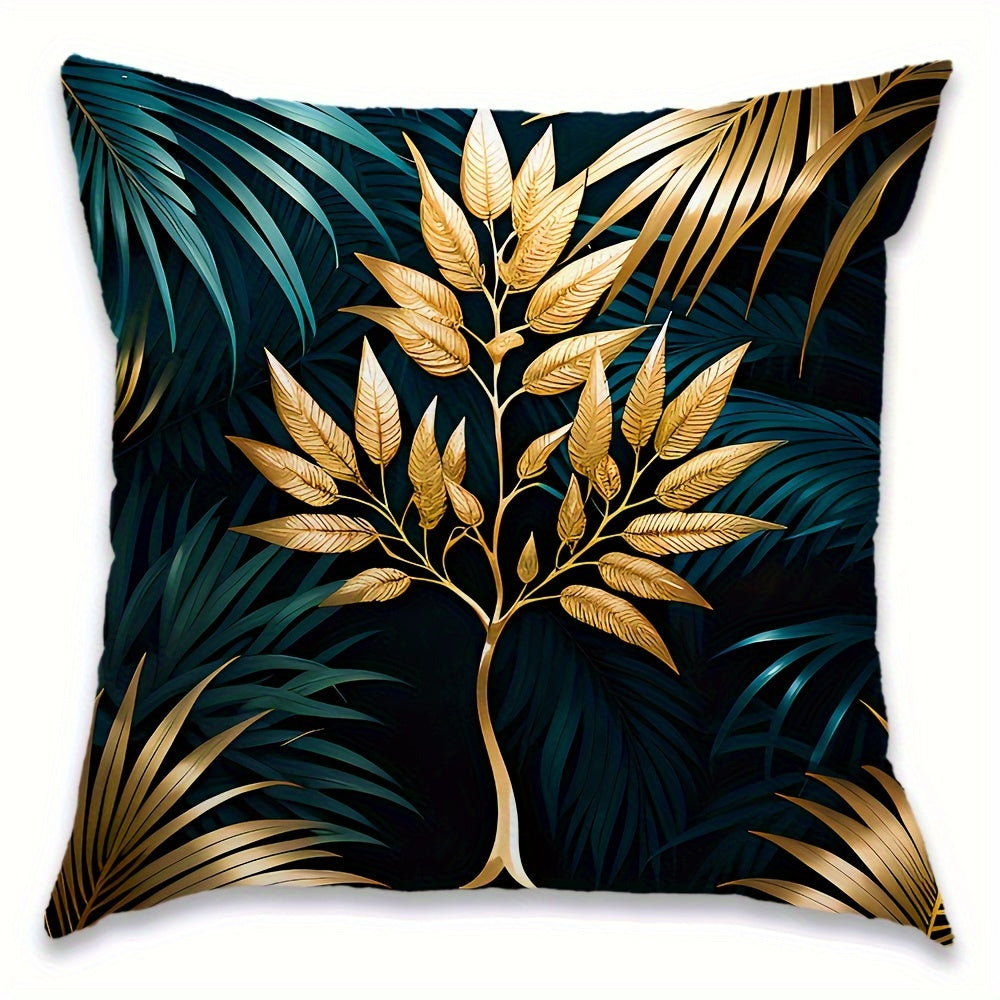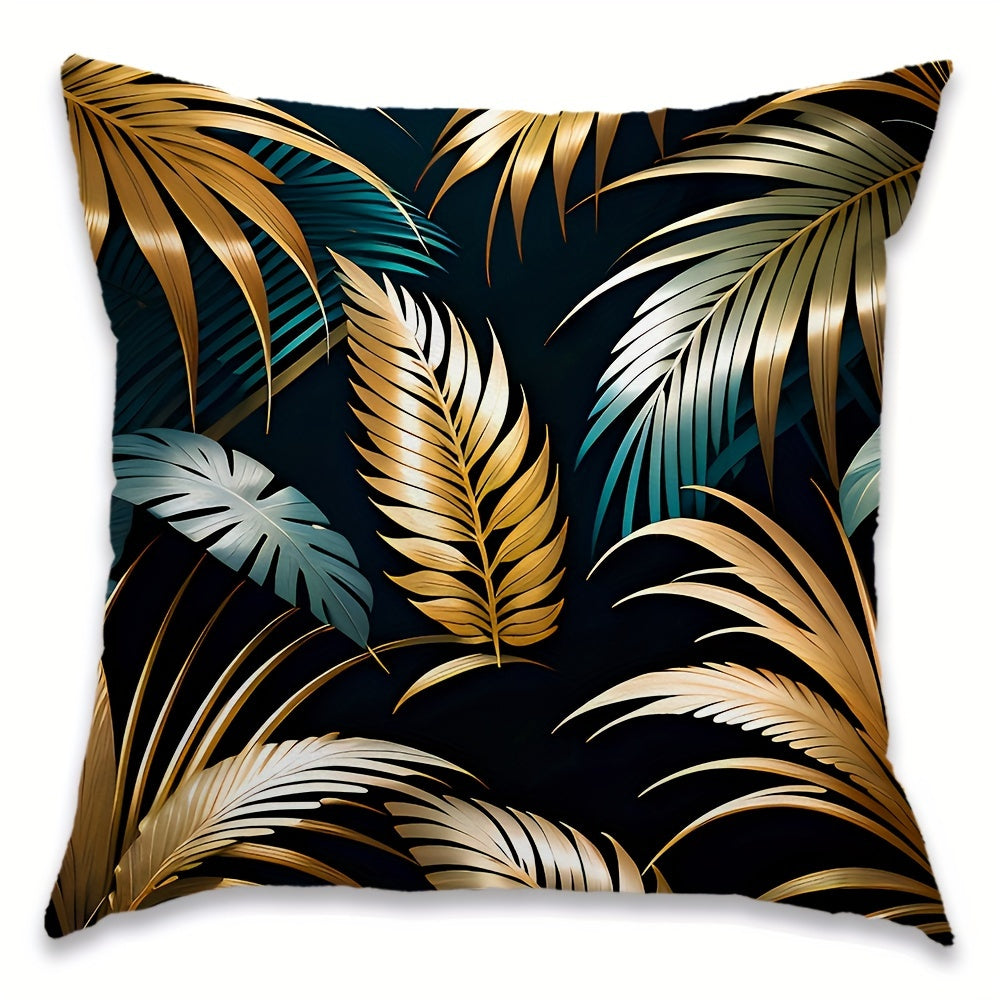 1 шт. Подушка из короткого плюша с принтом золотого листа для дома, автомобиля или офиса - Наполнитель подушки не включен