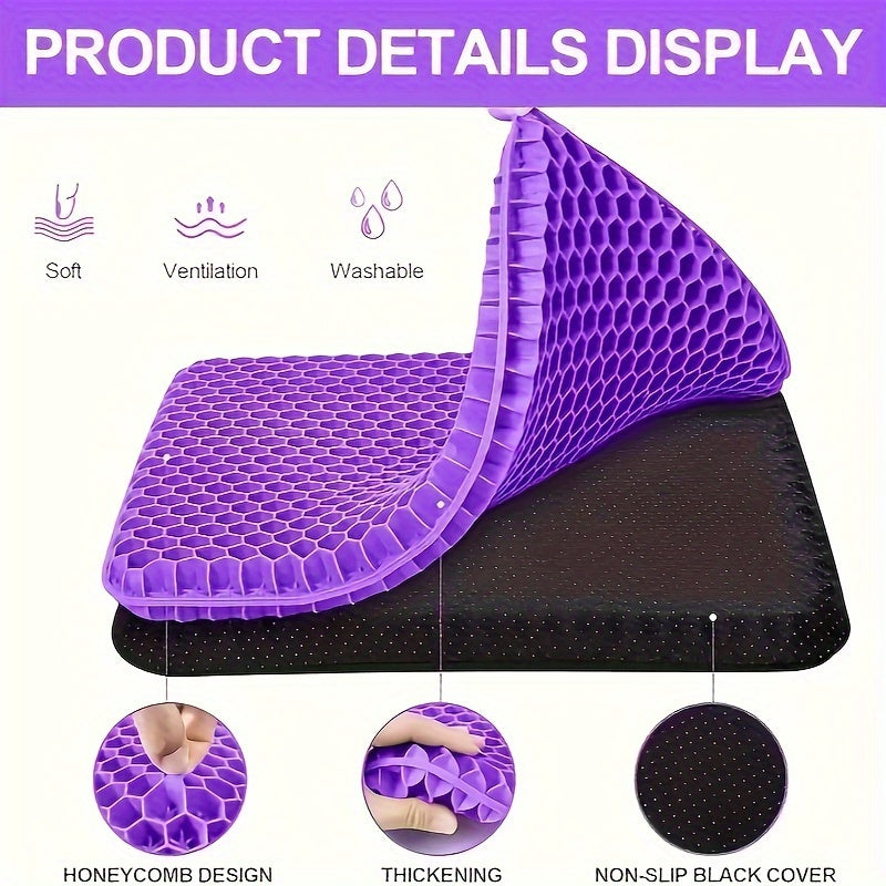 1 шт. Фиолетовая гелевая подушка для сидения с нескользящим чехлом для офиса и инвалидных колясок, двойной толстый дизайн, легкая в чистке, портативная и легкая