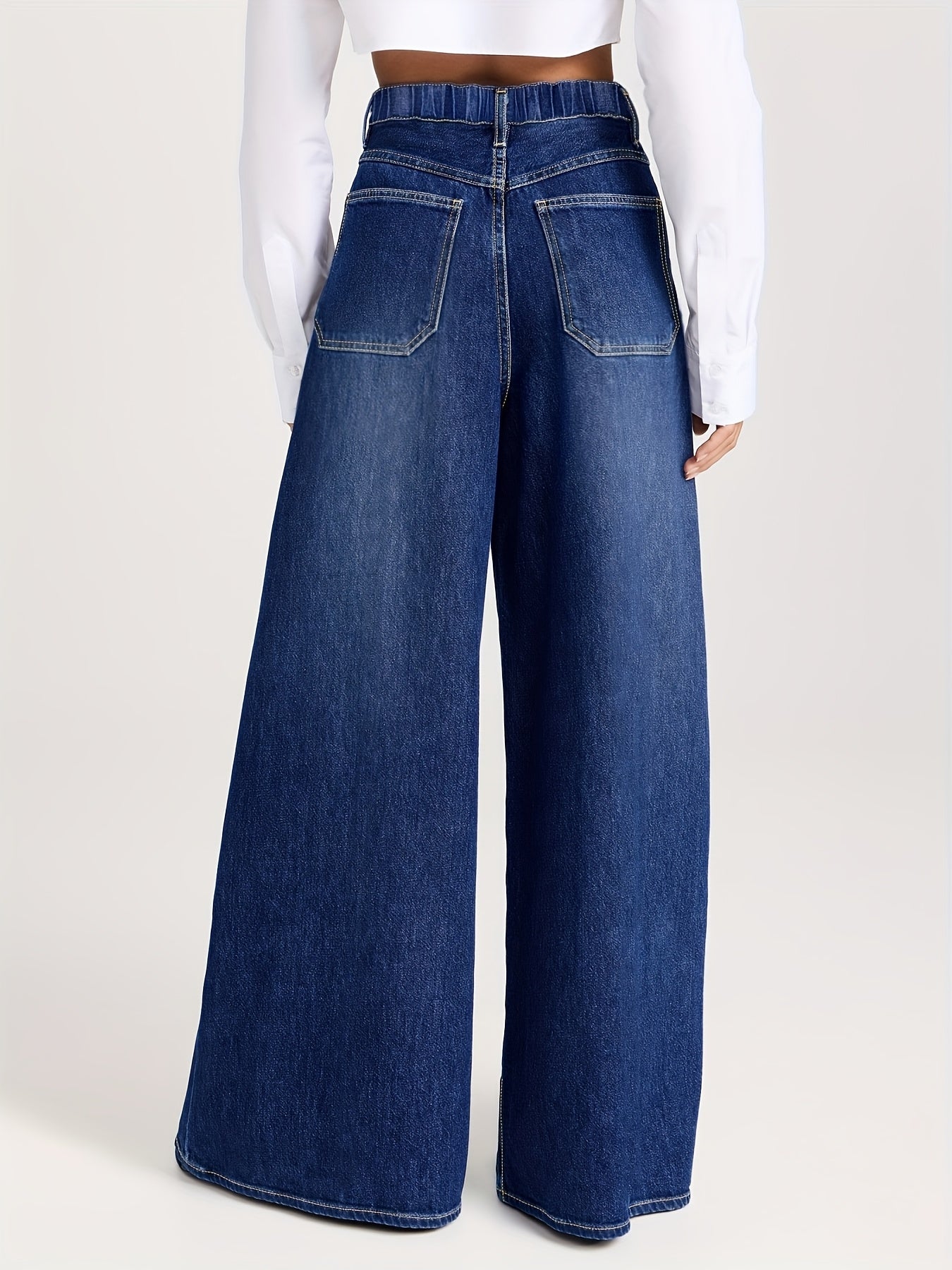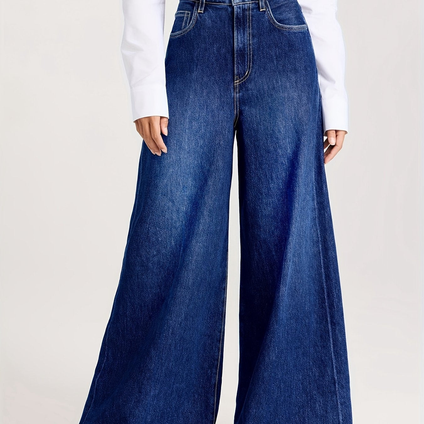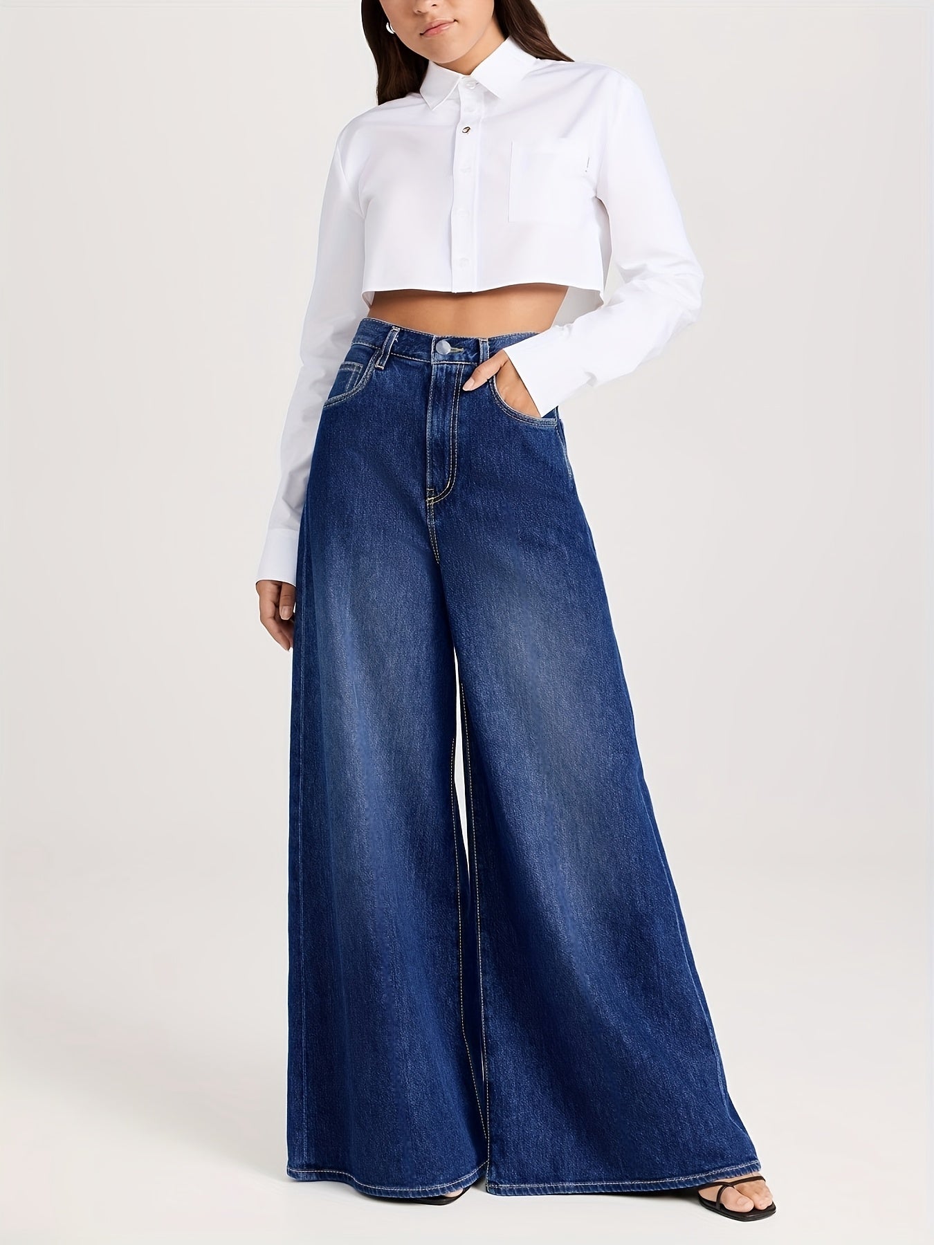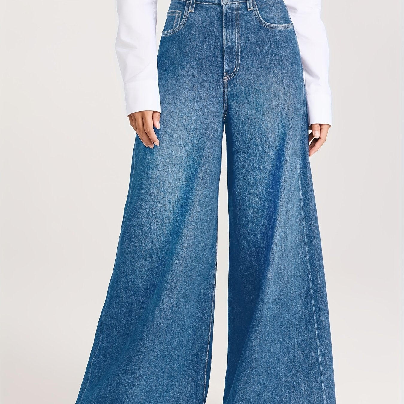 1 шт. Женские повседневные джинсы с широкими штанинами SENLANJIEQU, изготовленные из 70% хлопка, 28% полиэстера и 2% эластана. Особенности: средняя растяжимость, стирка, стиль уличной моды.