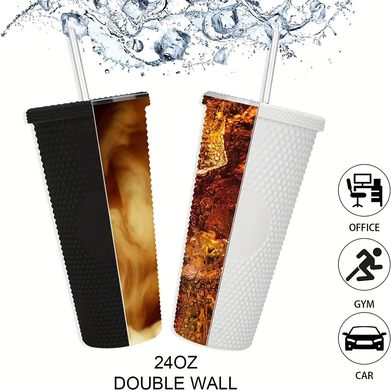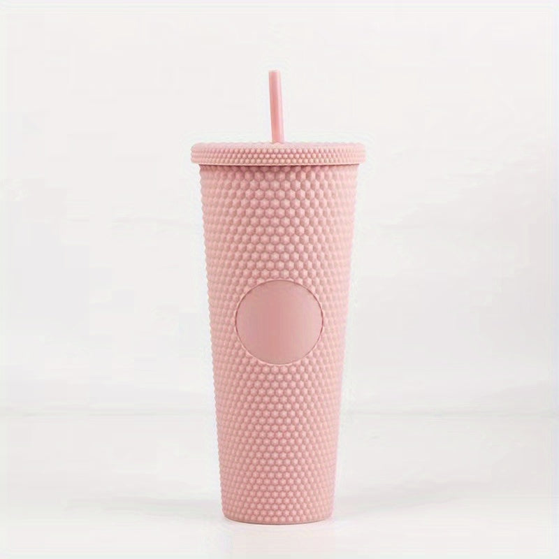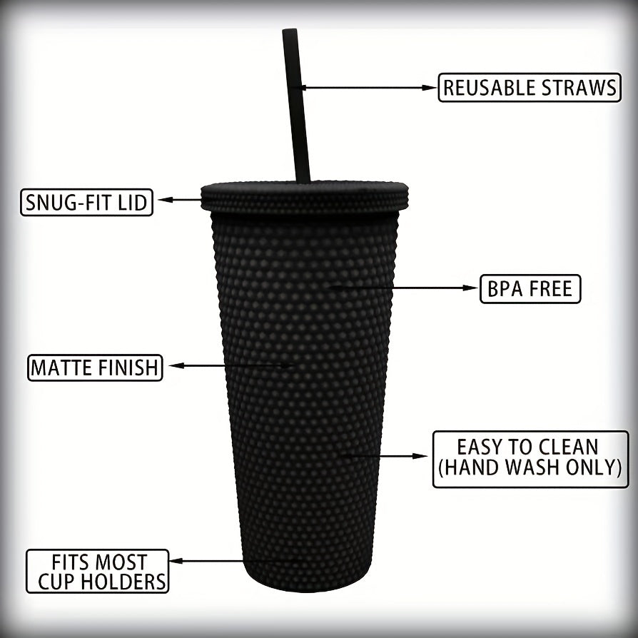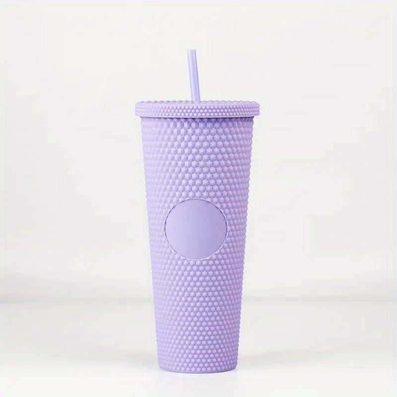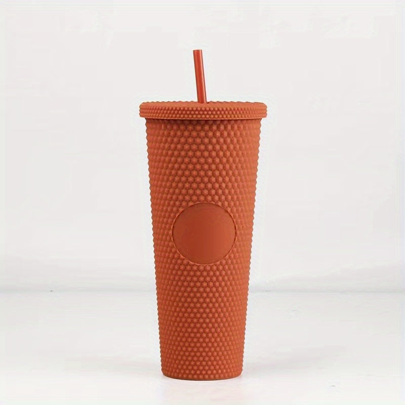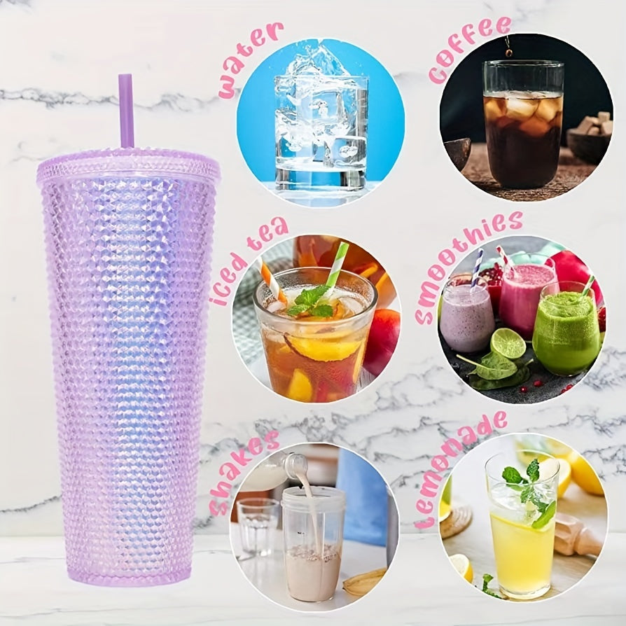 1 шт. стакан с шипами с крышкой и соломинкой, 24 унции матовые стаканы, без BPA, блестящий пластиковый стакан для воды, двухслойная бутылка для воды, многоразовый стакан с вентиляцией, посуда, предметы для домашней кухни, подарок на день рождения