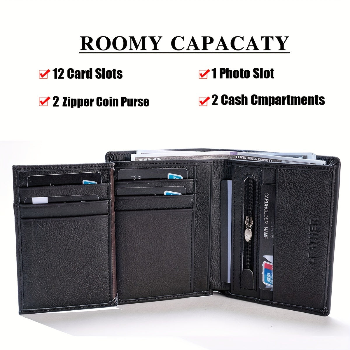 Мужской винтажный кожаный кошелек черной коровьей кожи с плетеным рюшем для карт