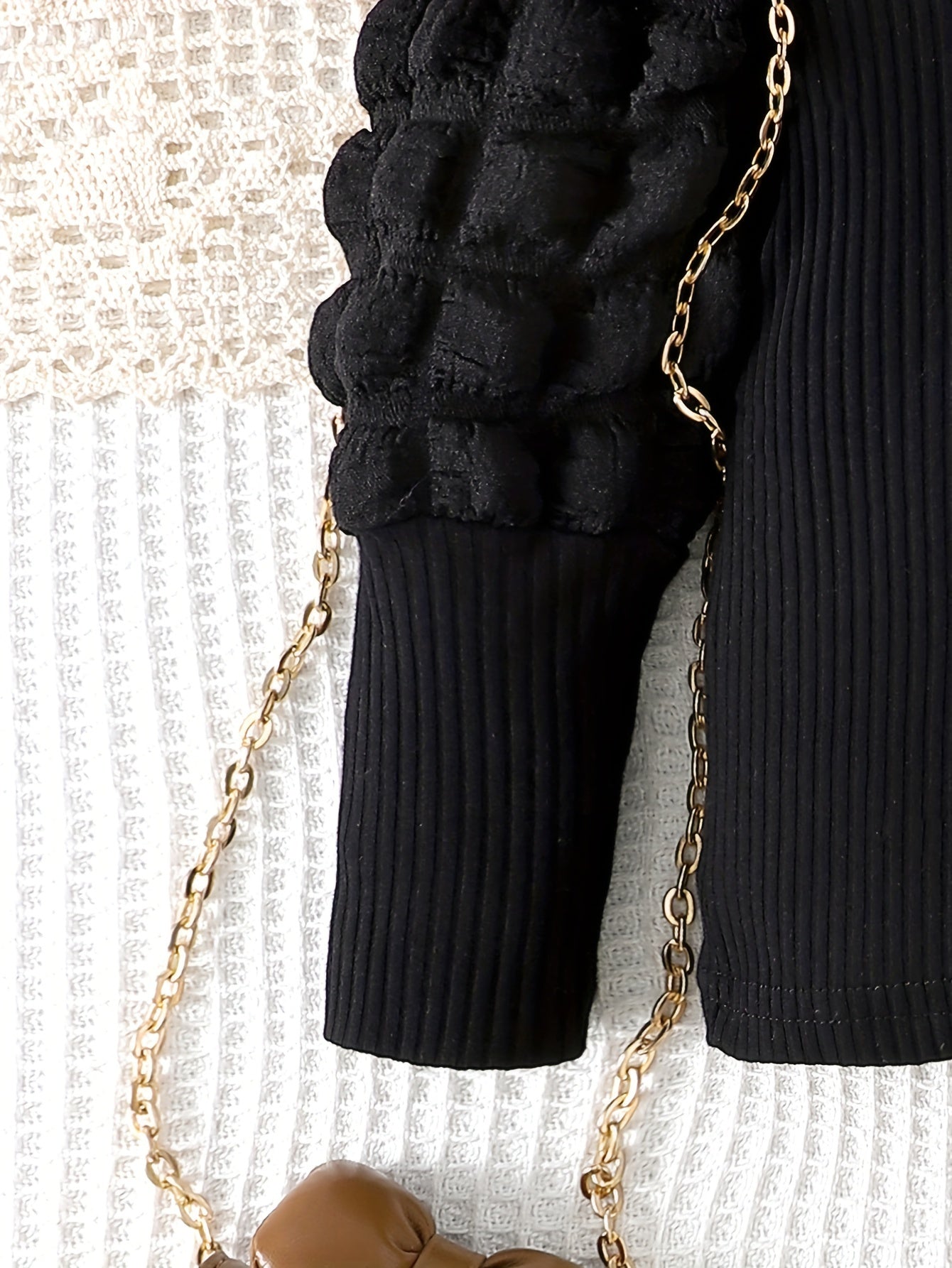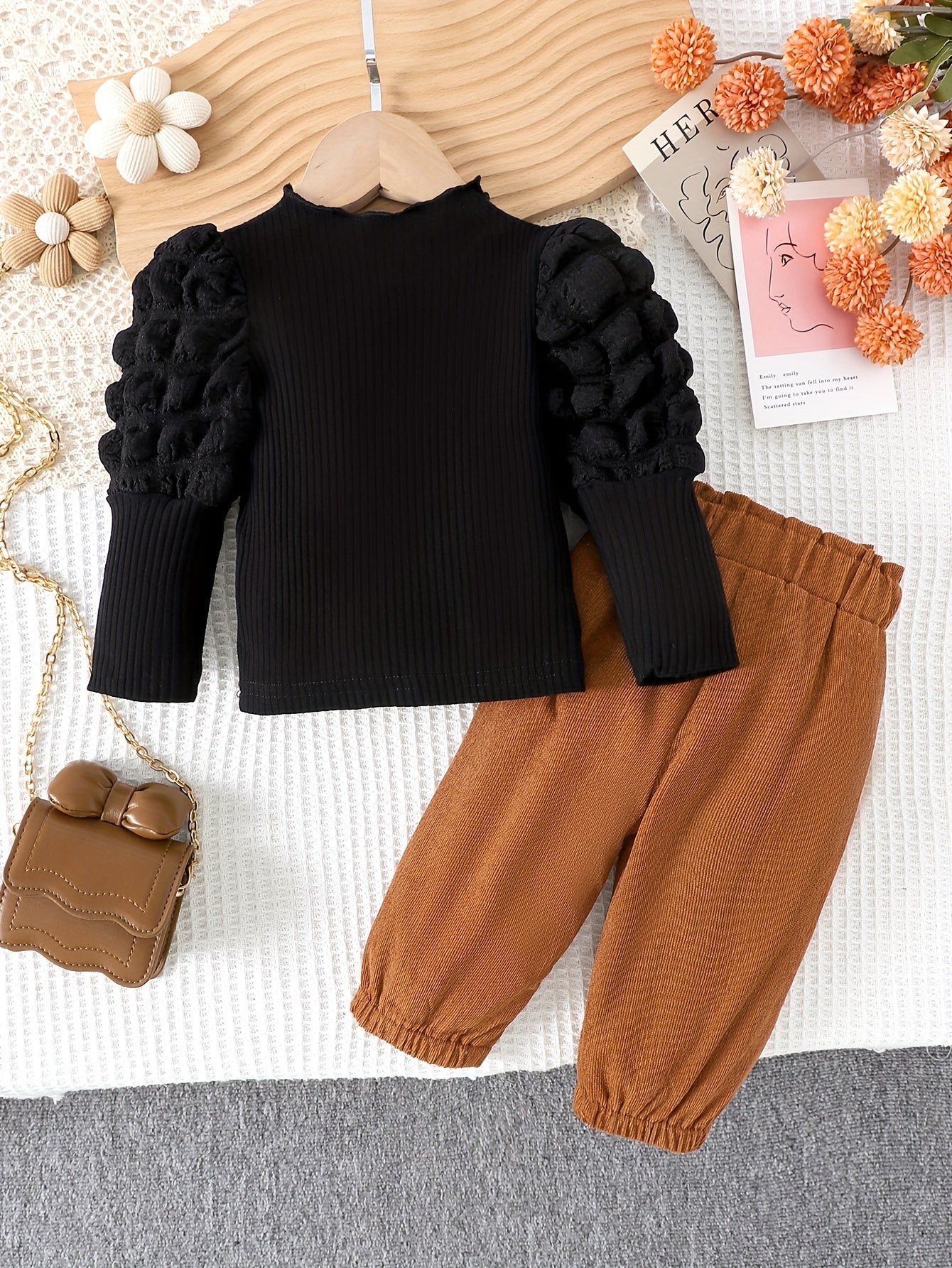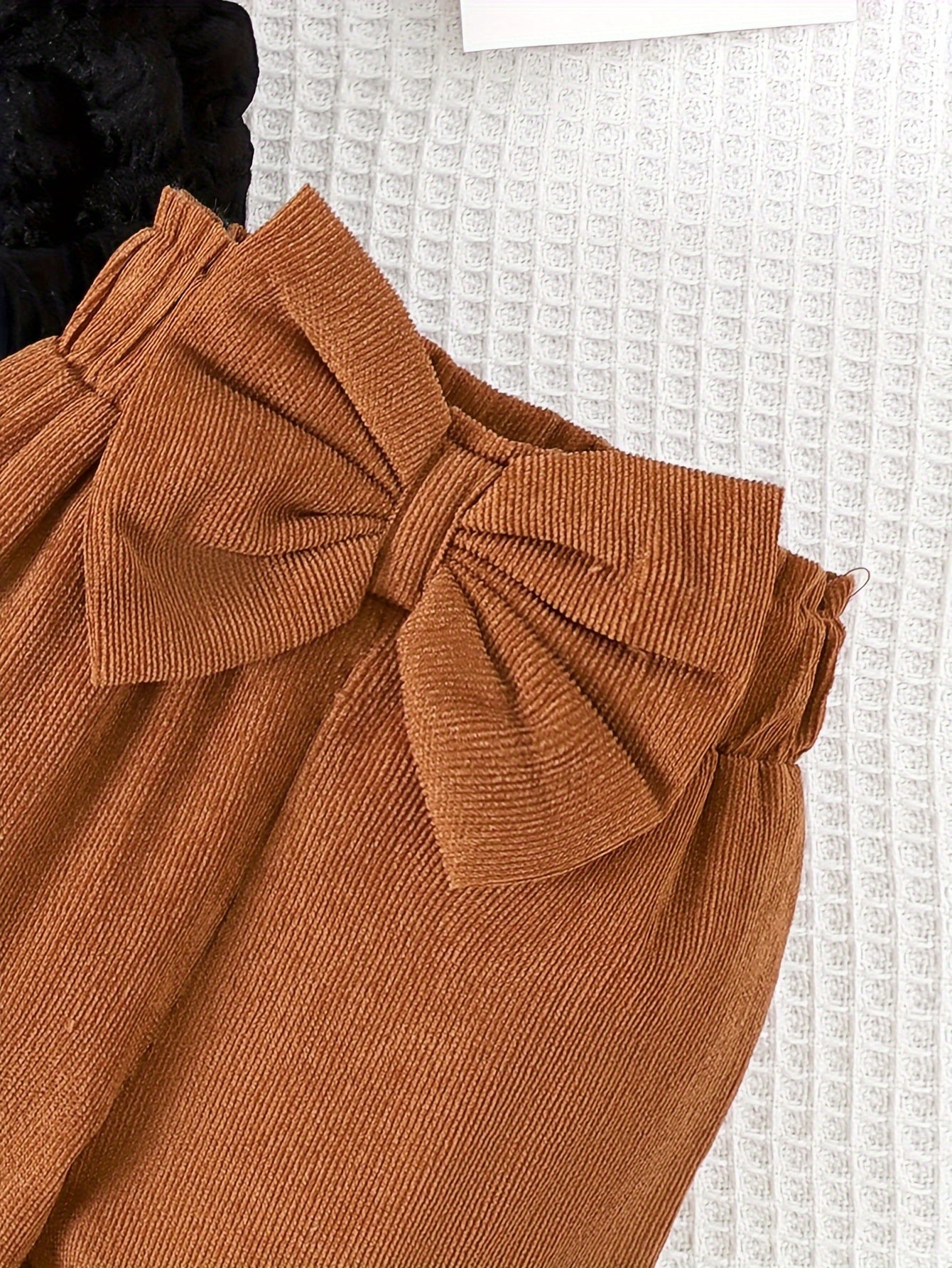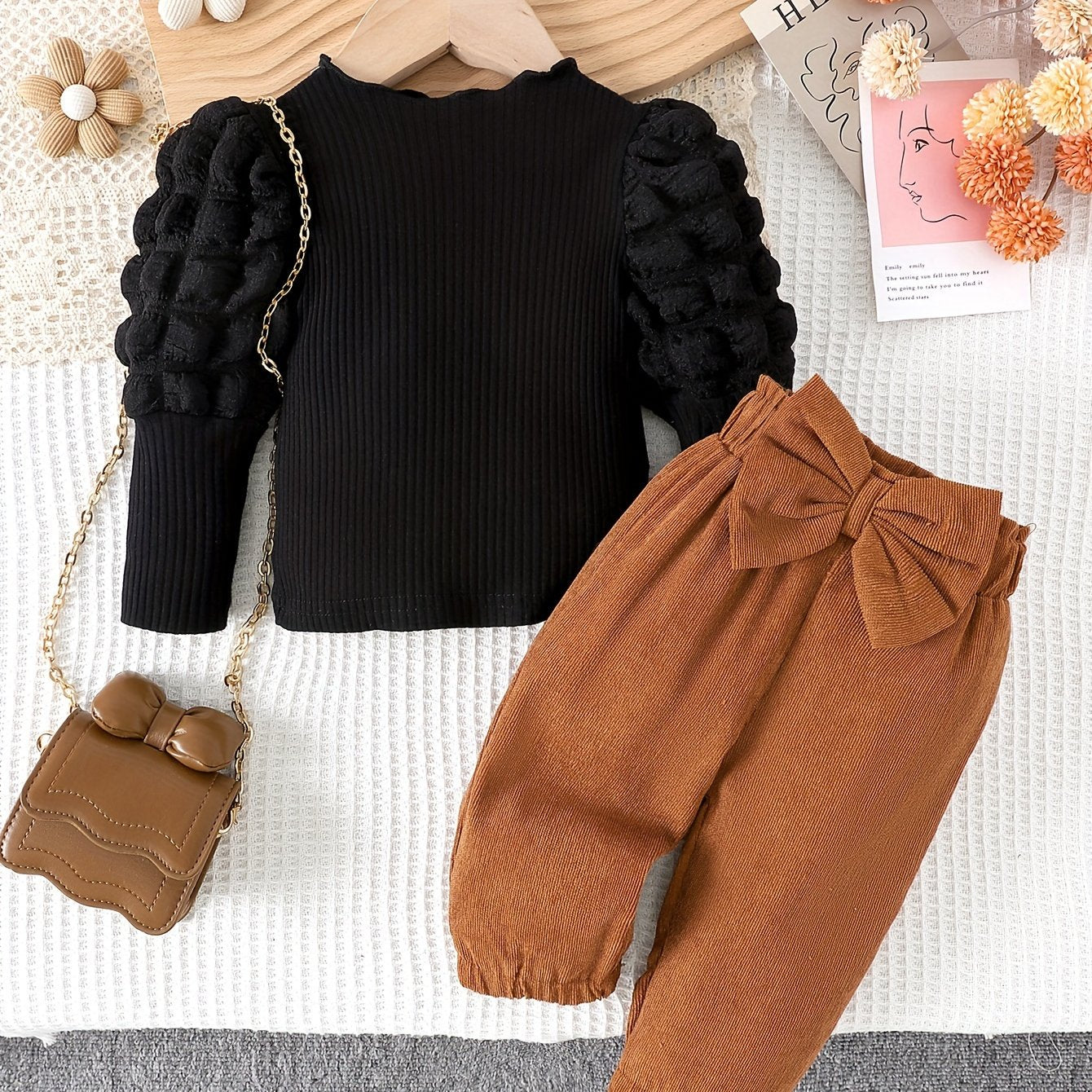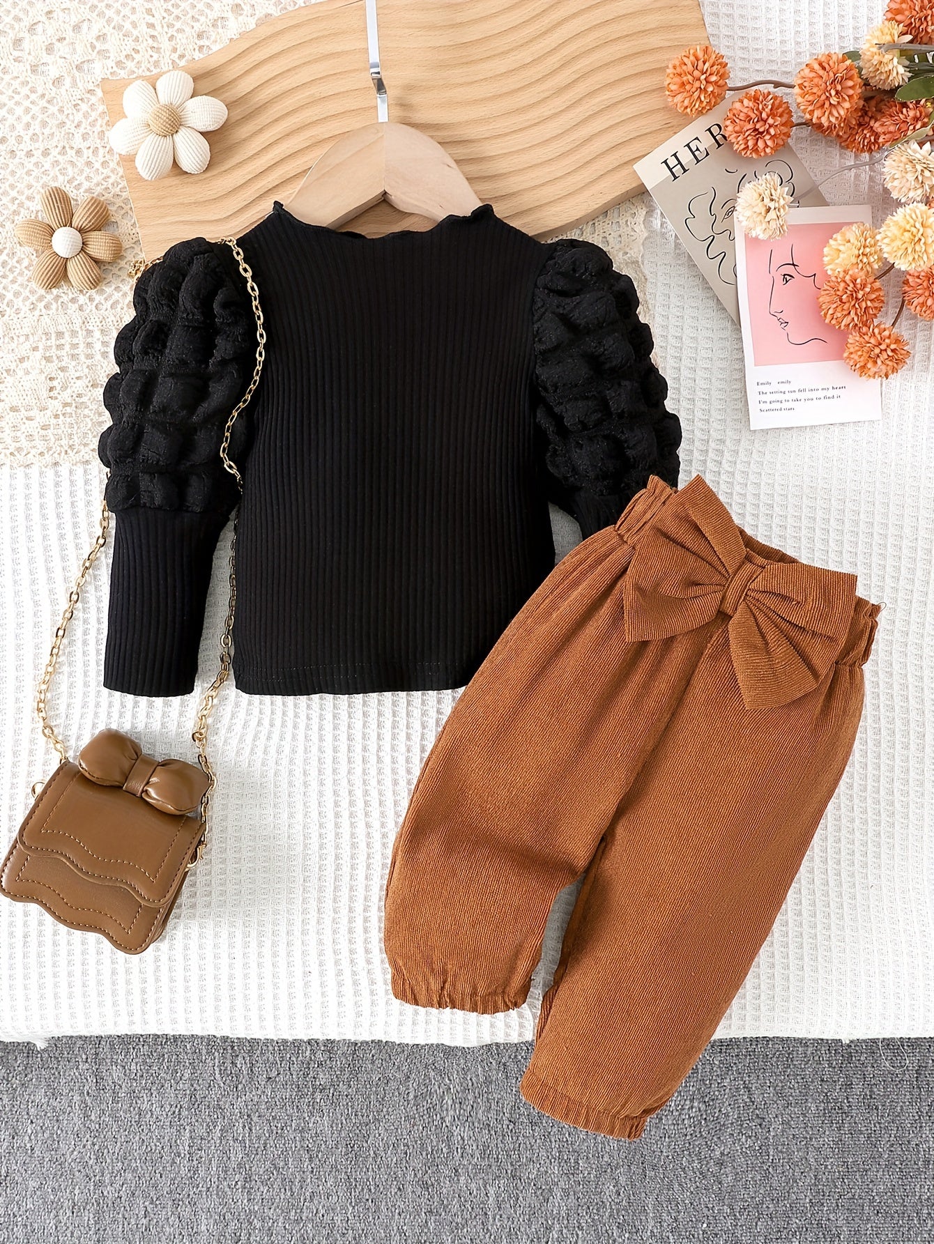Весенний и осенний комплект для девочек-новорожденных: топ и штаны с длинными рукавами и бантом для прогулок на улице