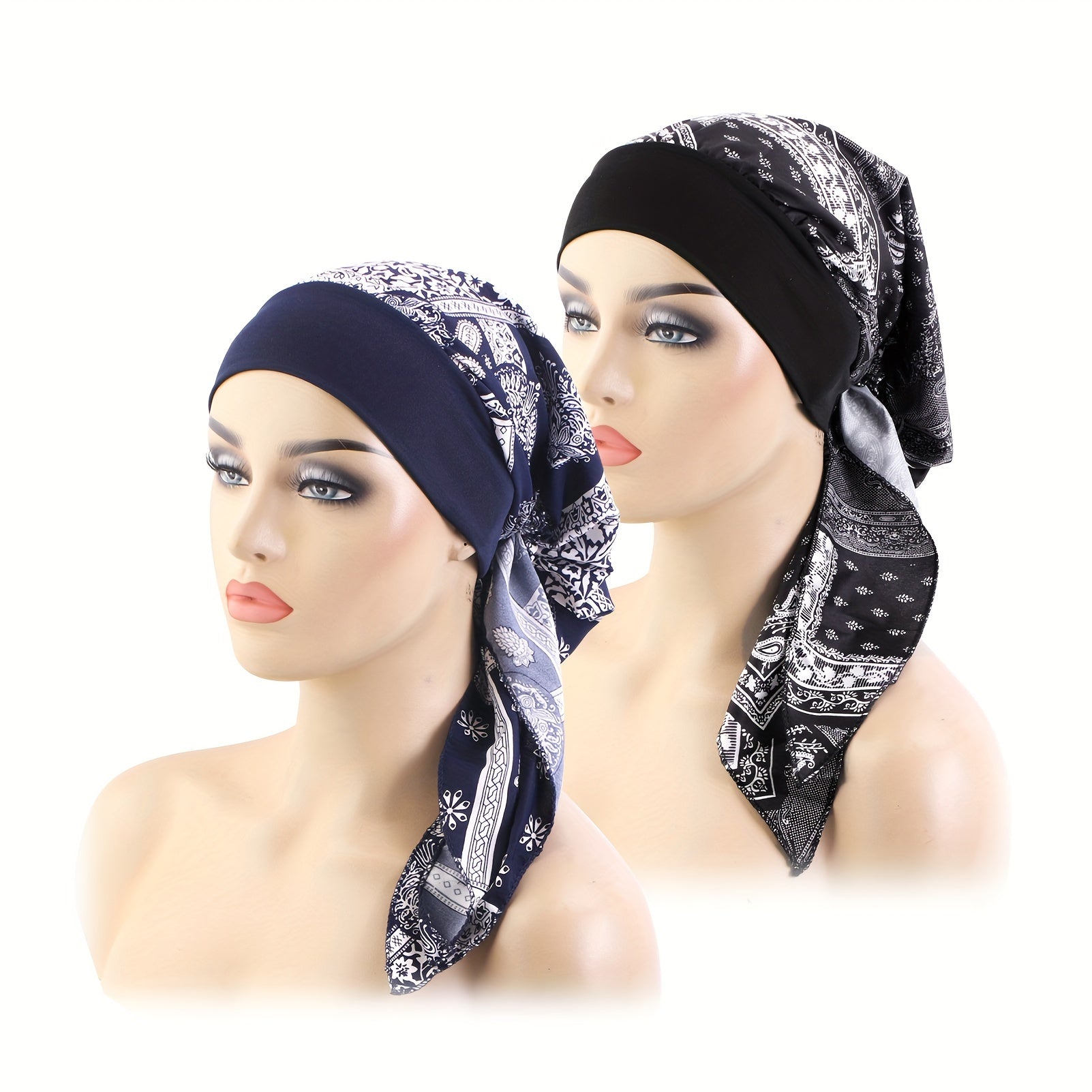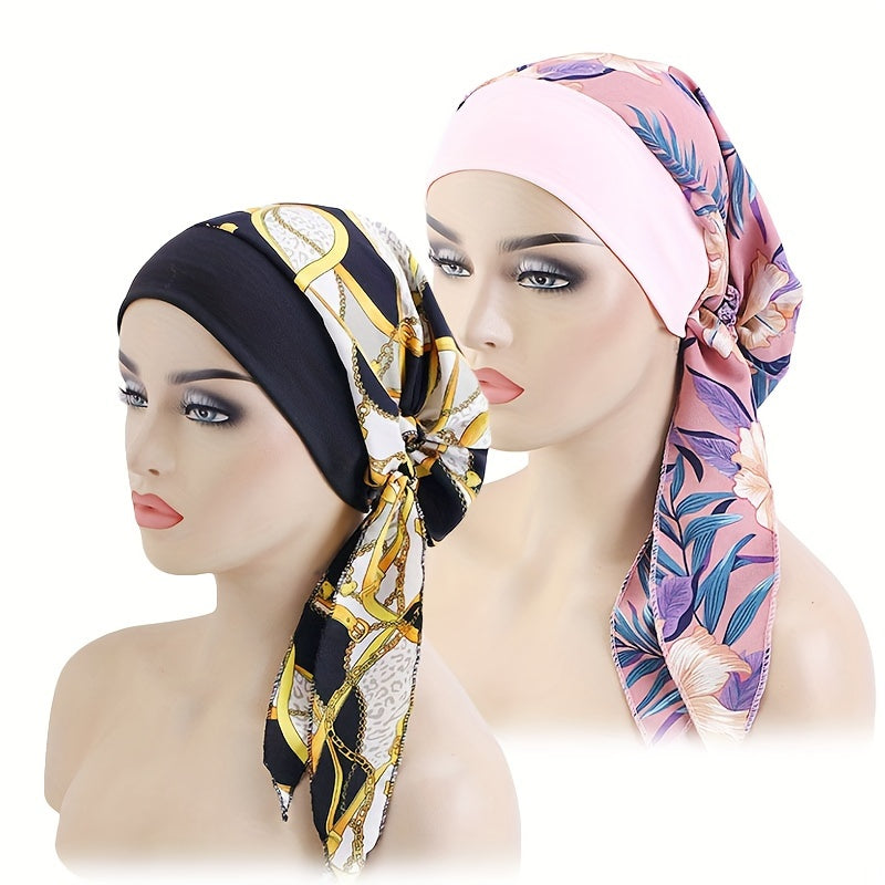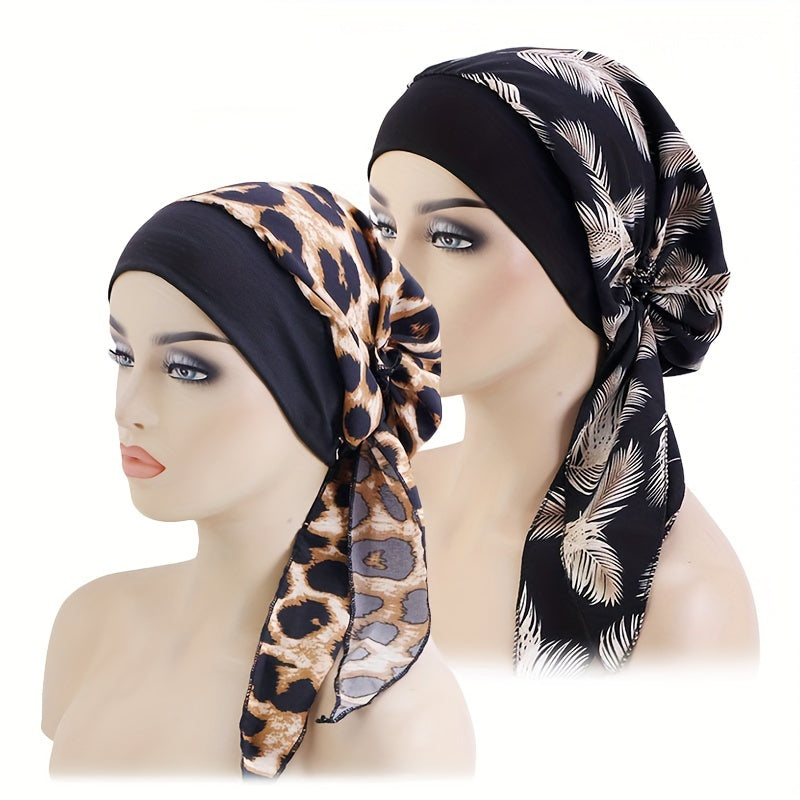 Бохо шик тюрбан с завязками с геометрическим узором из вязаного полиэстера для пациентов, проходящих химиотерапию