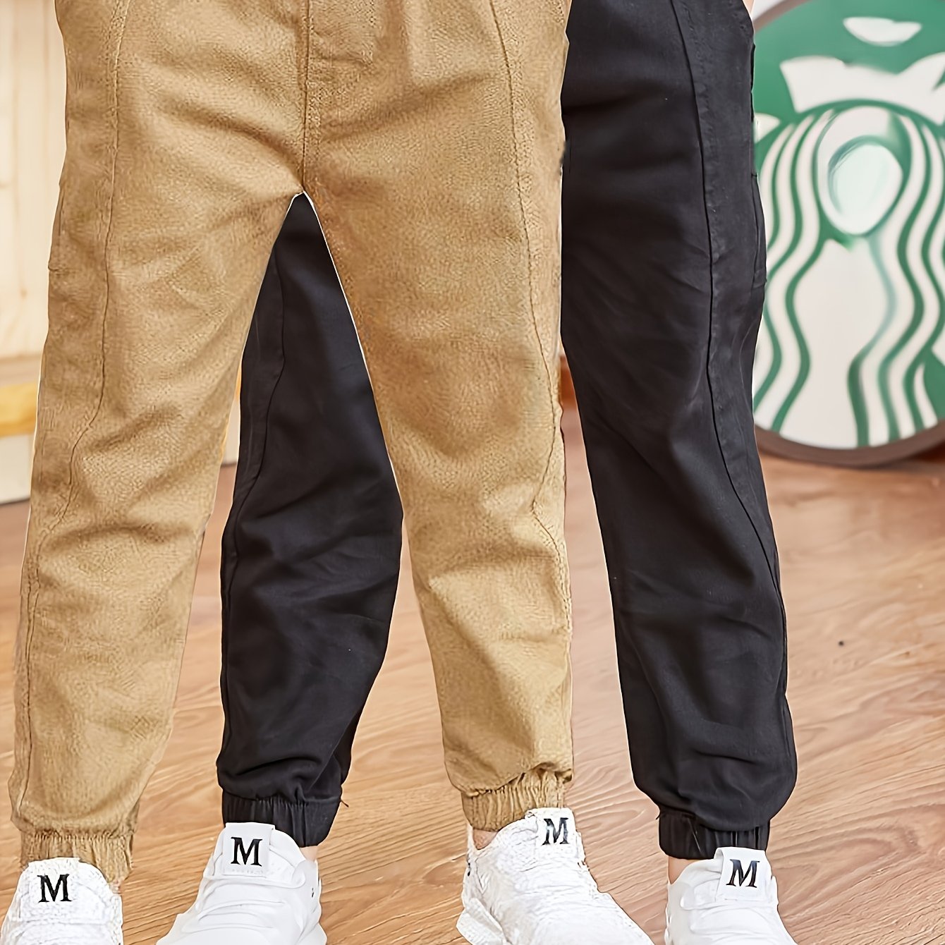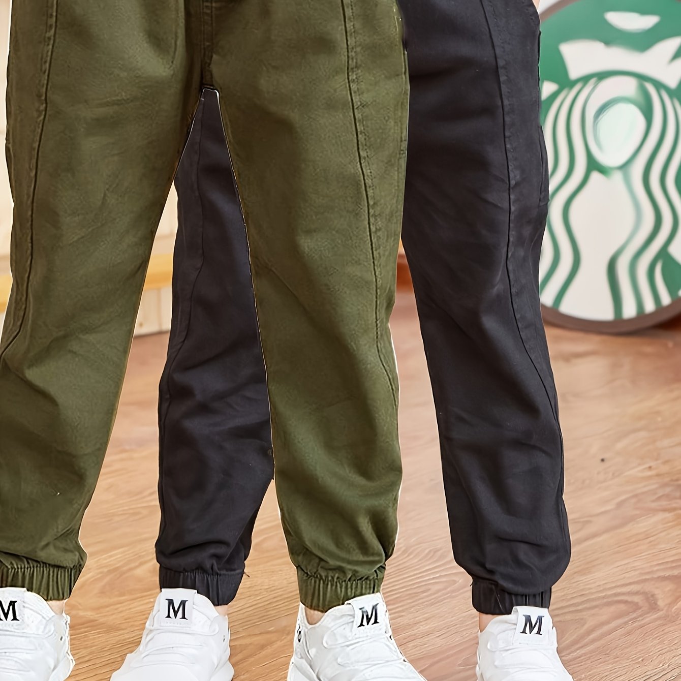 Детский набор из 2 пар хлопковых штанов-карго для мальчиков, повседневные, однотонные, для всех сезонов