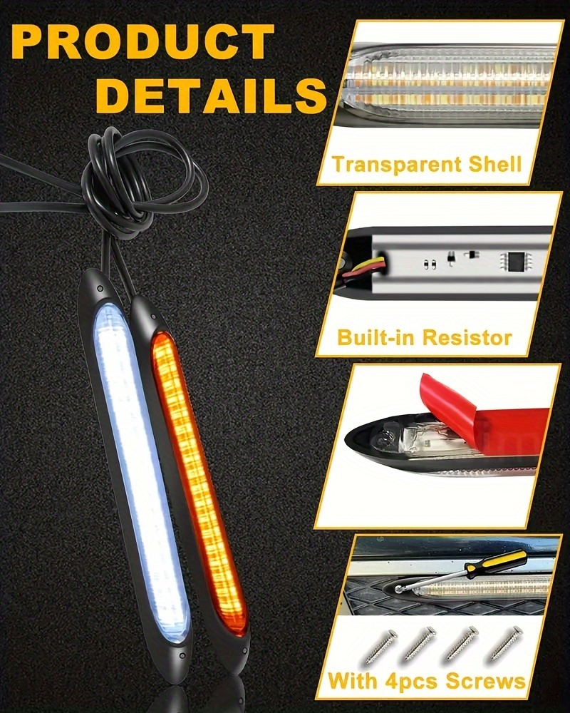 2-комплект 12V LED дневных ходовых огней Желтые полосы для автомобиля с жестким подключением