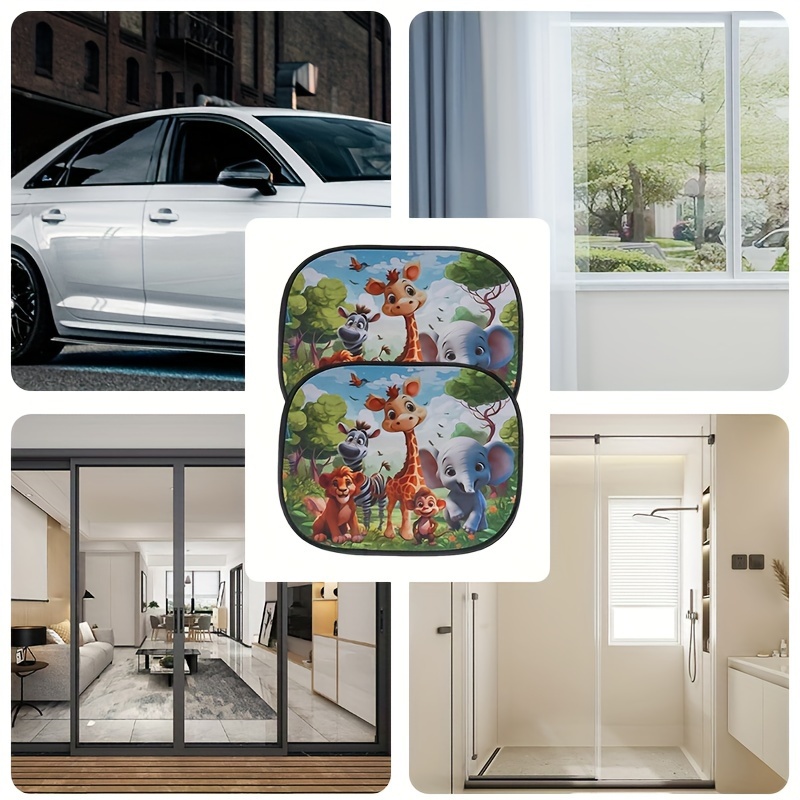 2-комплект мультяшных животных из нейлона для автомобильных солнцезащитных козырьков, универсальный размер, шторы для окон, охлаждение, теплоизоляционные тени