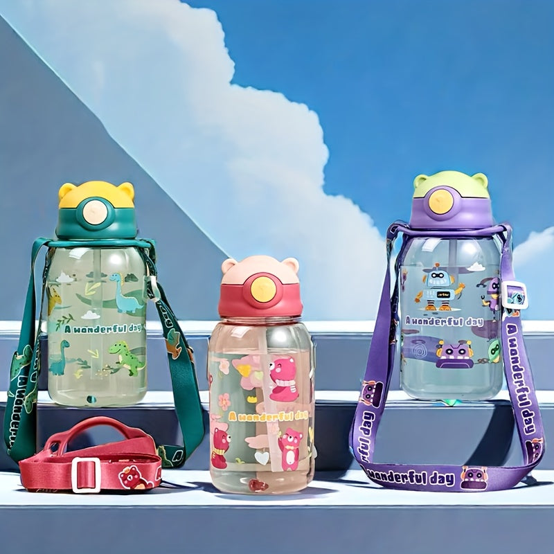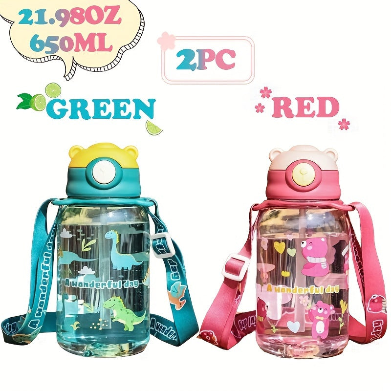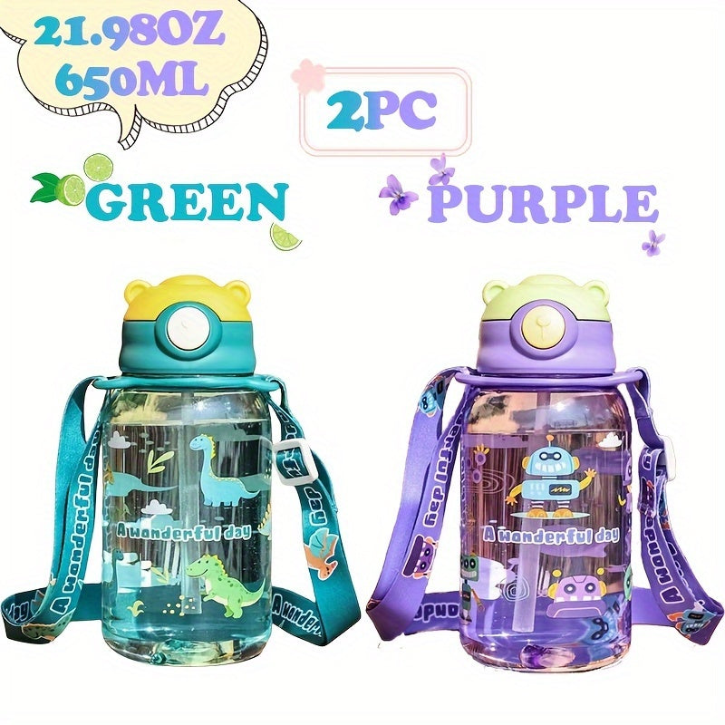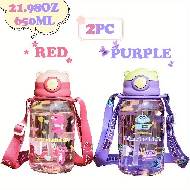 2-Pack бутылок с водой Bear объемом 20.98 унций с соломинкой и ремешком - Можно мыть вручную, без BPS, идеально подходит для школы, путешествий, спорта, праздников и торжеств.