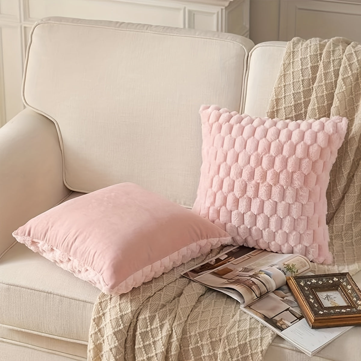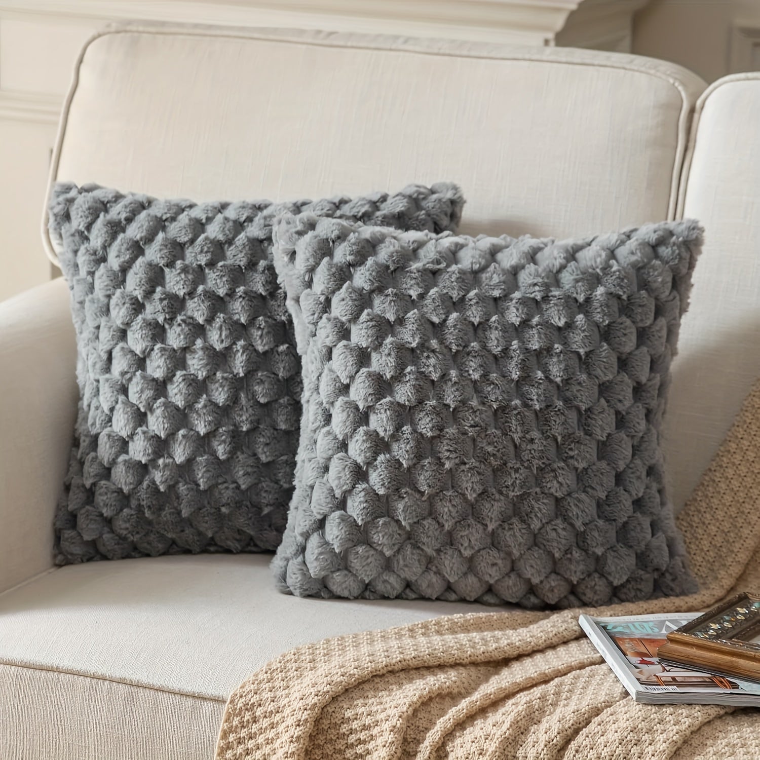 2-набор мягких подушек из искусственного меха с застежкой-молнией, машинная стирка и универсальные для домашнего декора или подарков на Рождество.