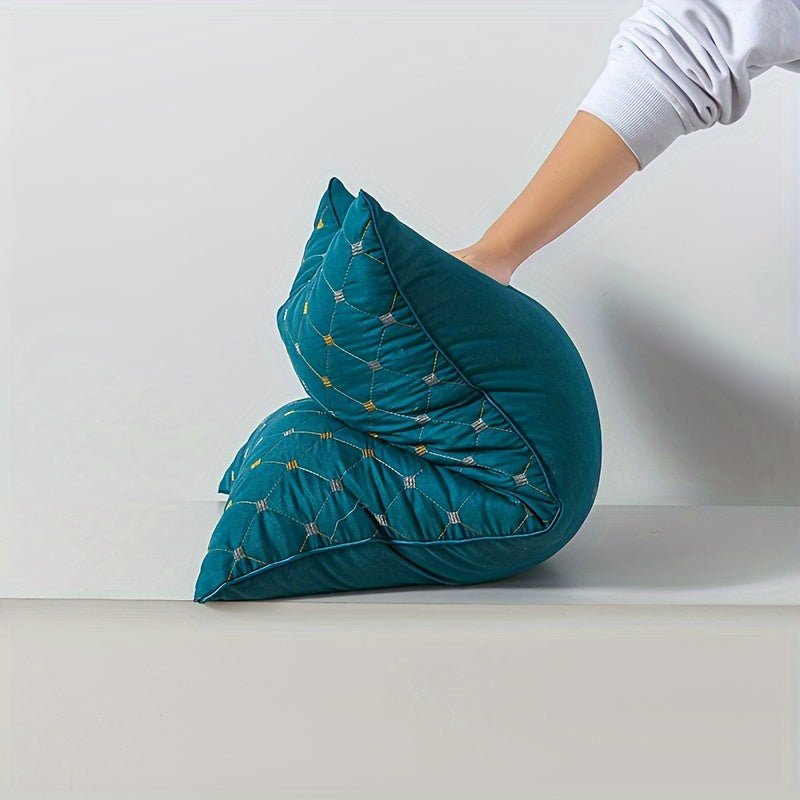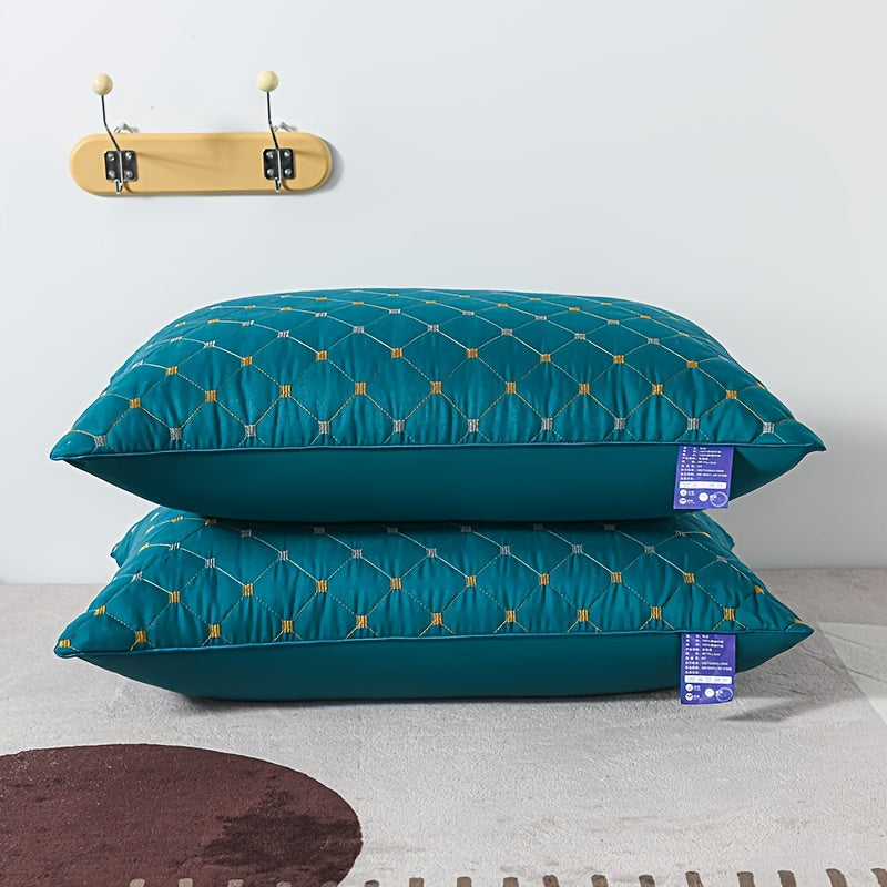 2 мягкие бархатные подушки обеспечивают комфортную поддержку шеи для всех поз во время сна, с моющейся влаговыводящей тканью и современным геометрическим дизайном в синих и белых тонах, подходящим для любого сезона.