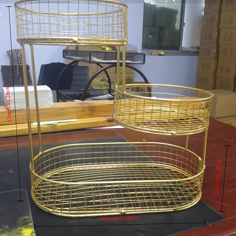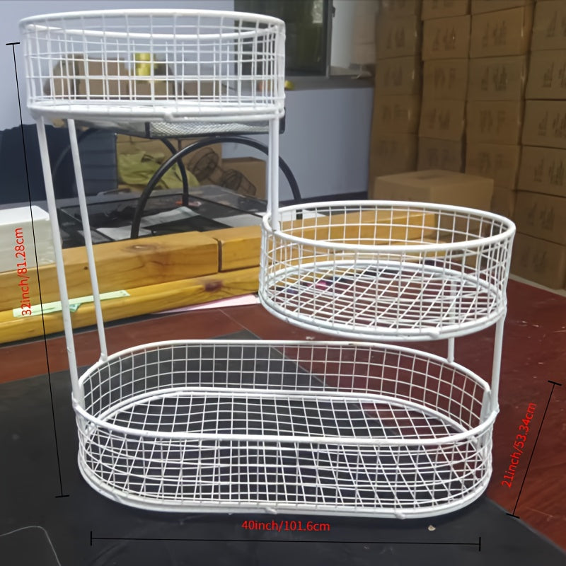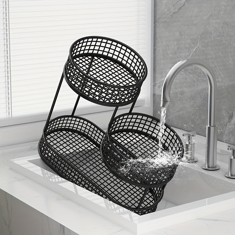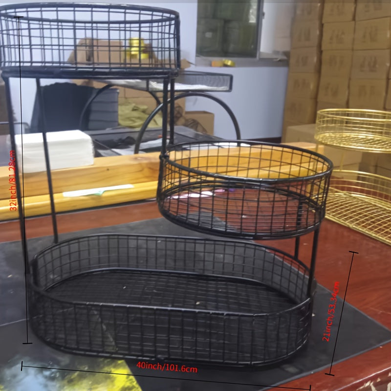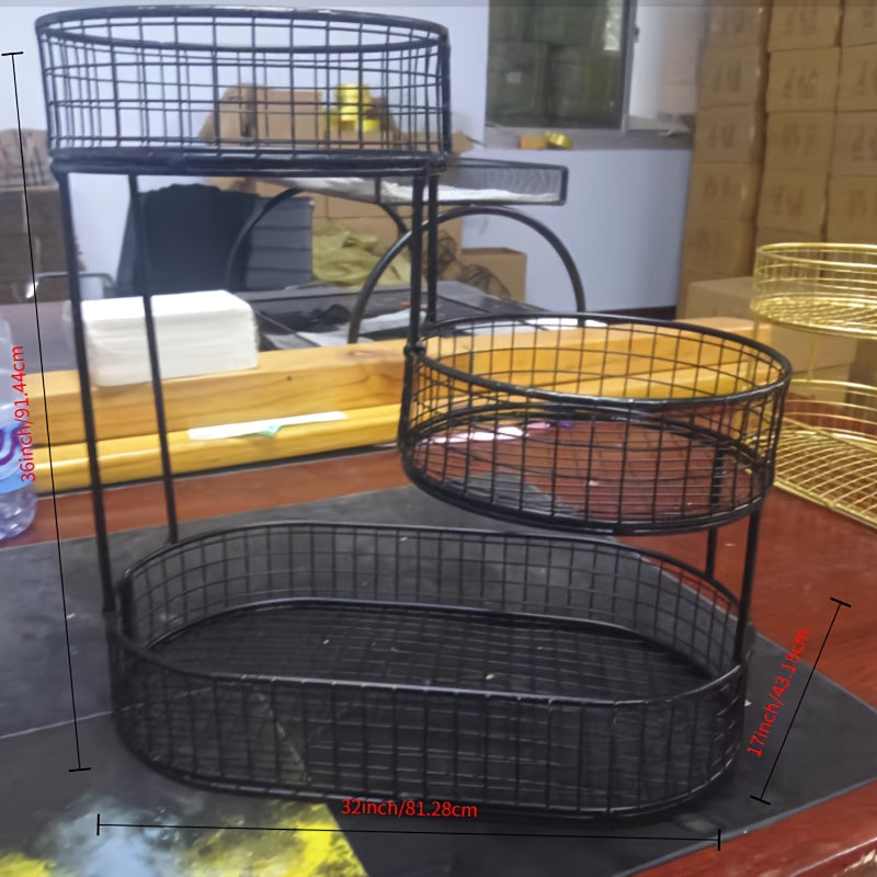 Двухуровочная корзина для хранения из черной металлической сетки для кухни и гостиной