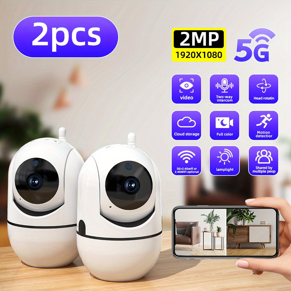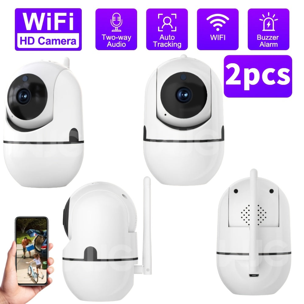 2 WJG Беспроводные камеры безопасности, 1080P HD, 4X зум, Двусторонний аудио, Уведомления о движении, Ночное видение, Питание от USB, Не водонепроницаемые, для домашнего и коммерческого наблюдения.